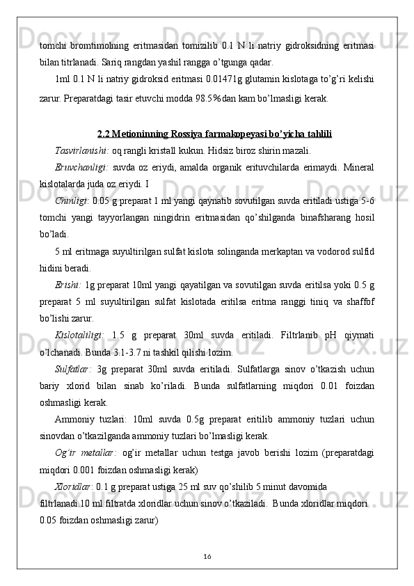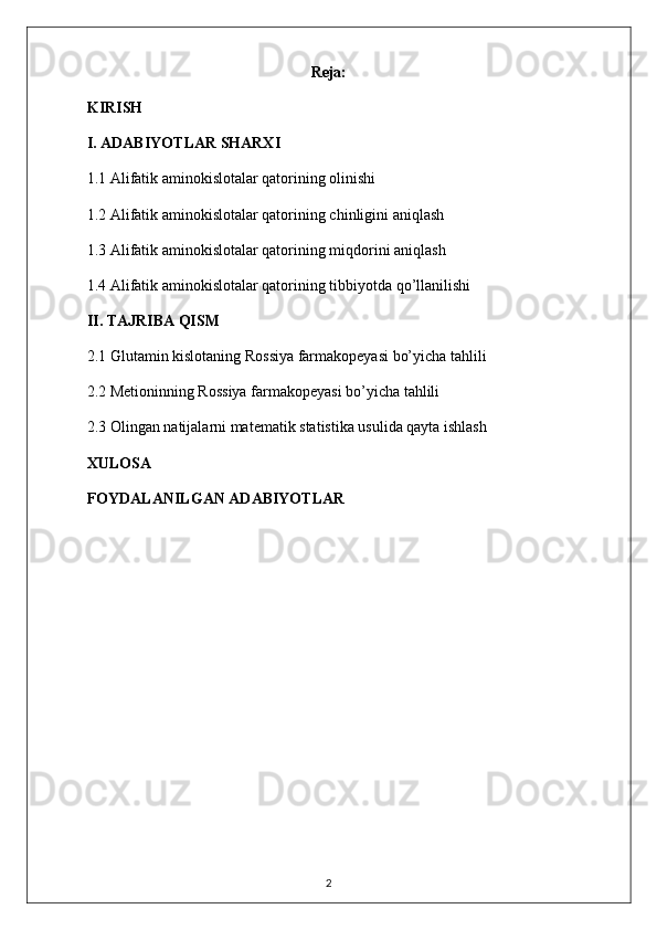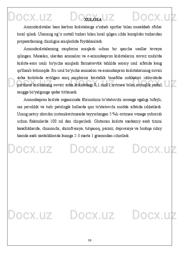 Alifatik aminokislotalar qatori dori preparatlari tahlili
