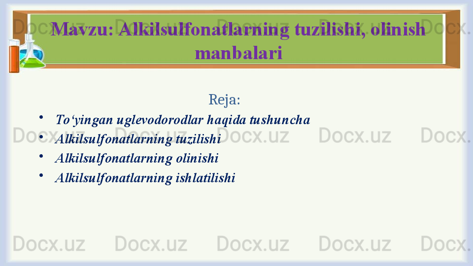 Alkilsulfonatlarning tuzilishi, olinish manbalari