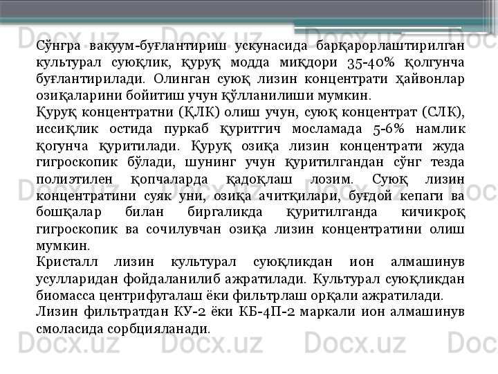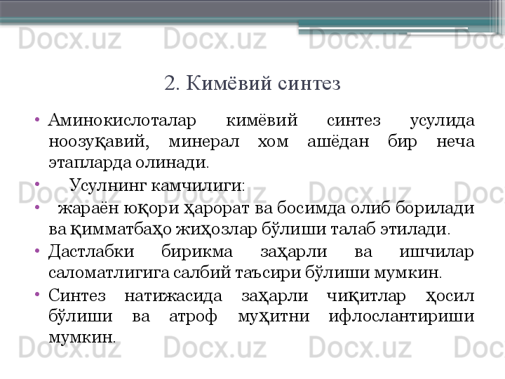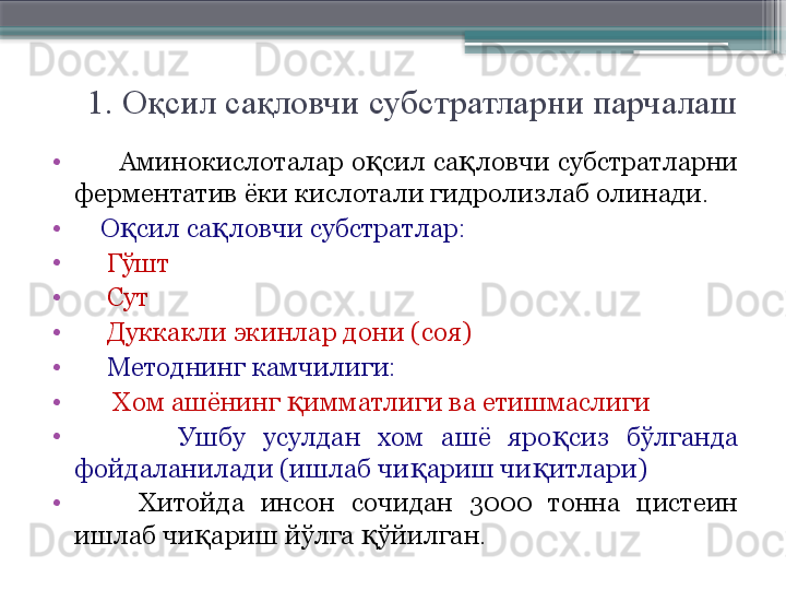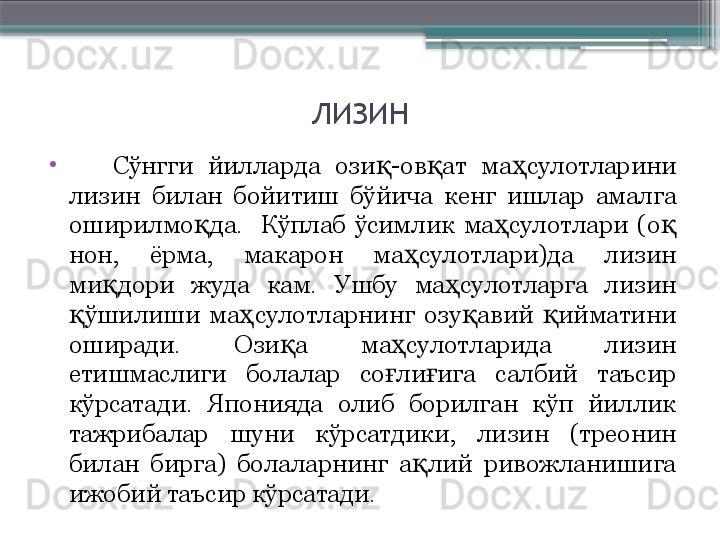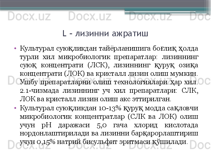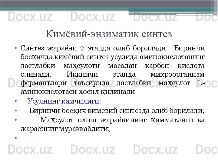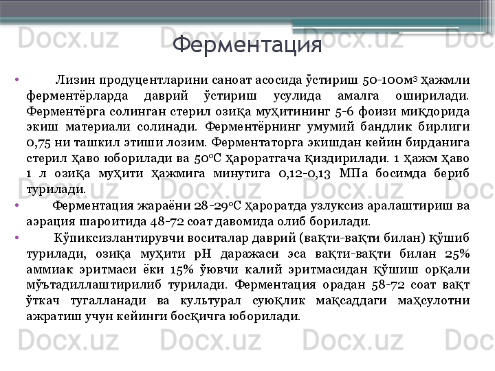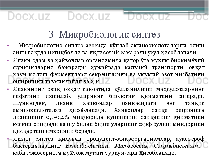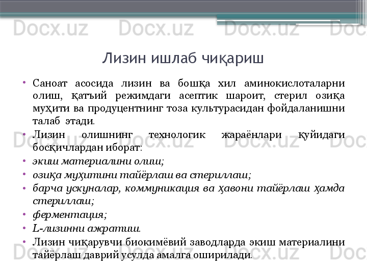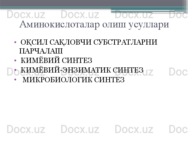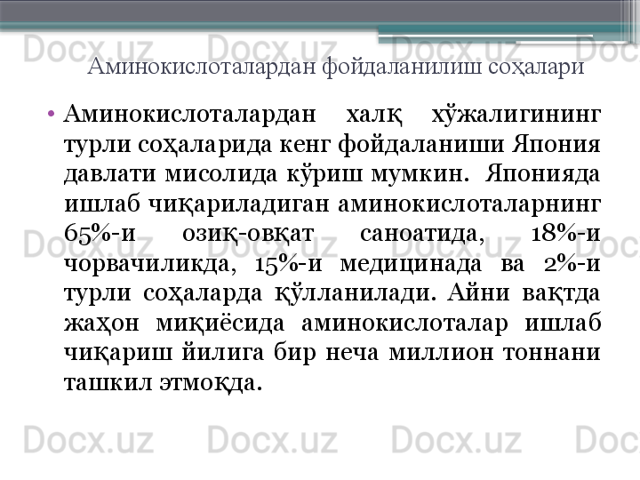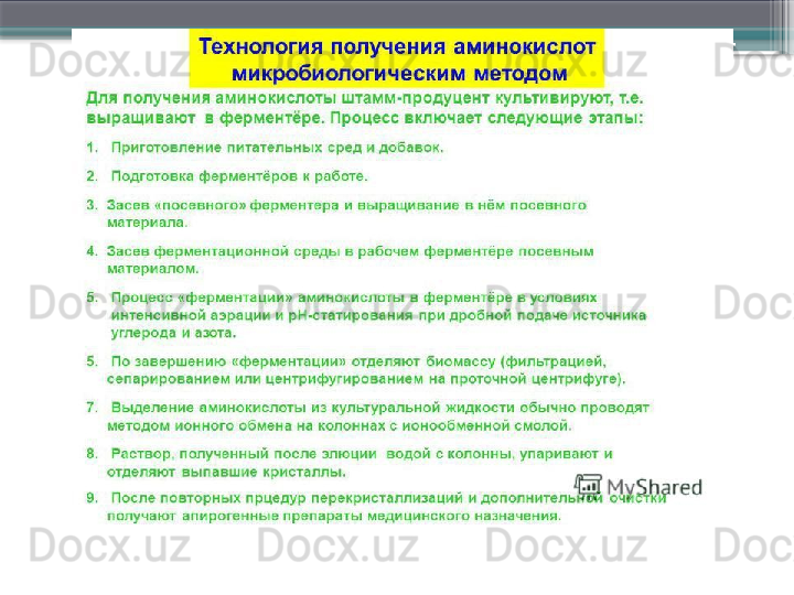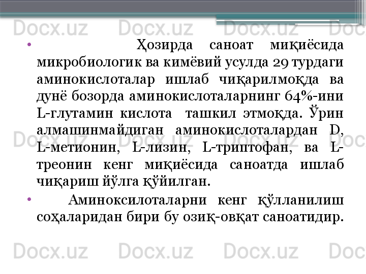 Аминокислоталар ишлаб чиқариш биотехнологияси