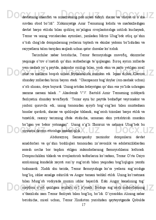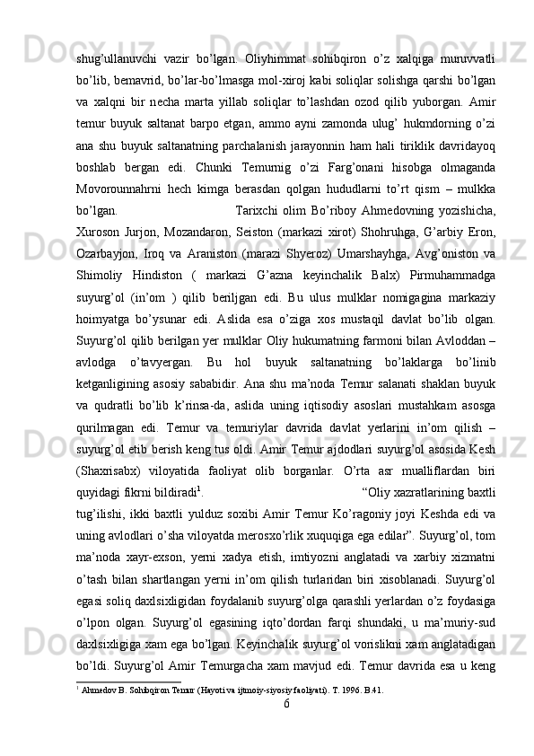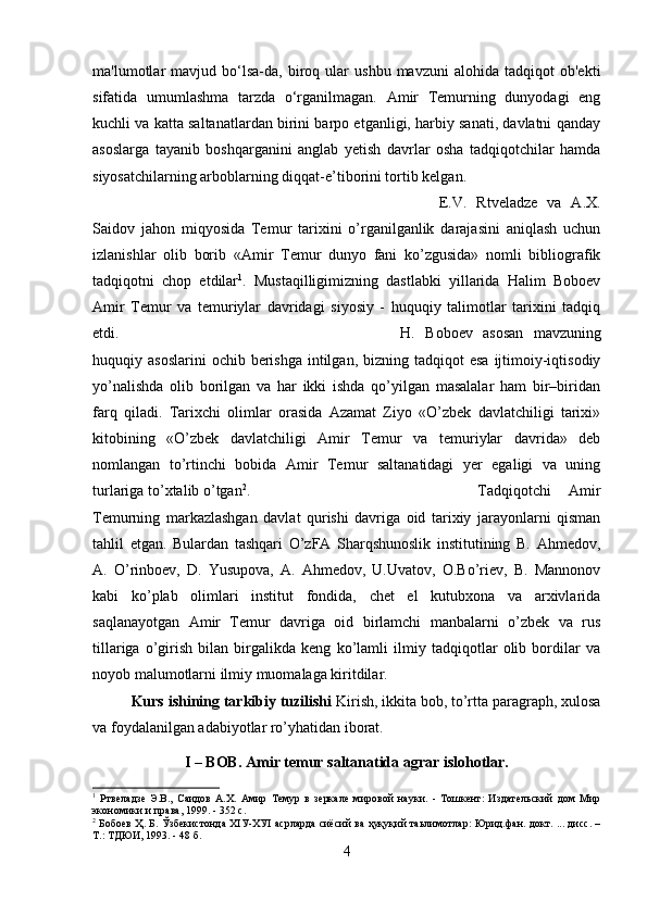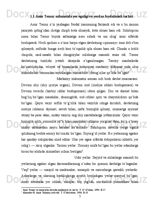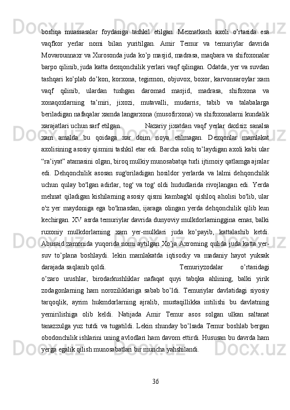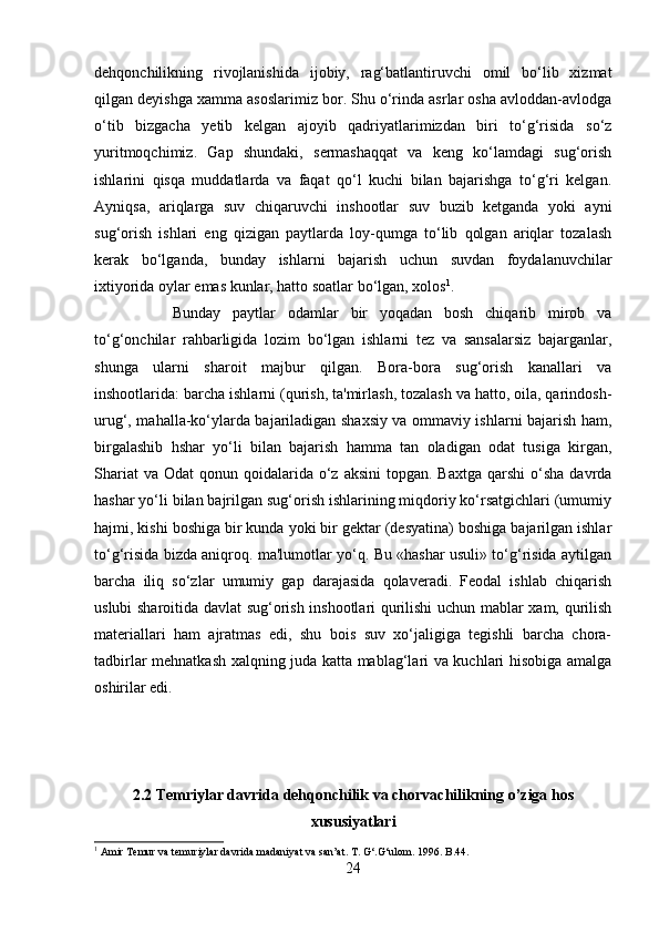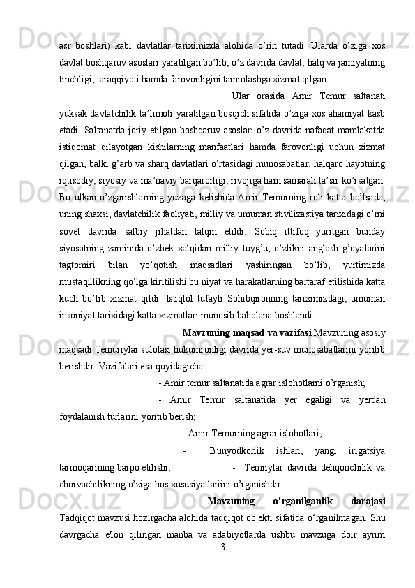 Ushbu Kurs ishida Temuriylar davlatida yer-suv munosabatlari yoritilgan