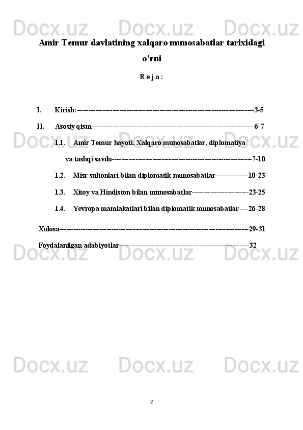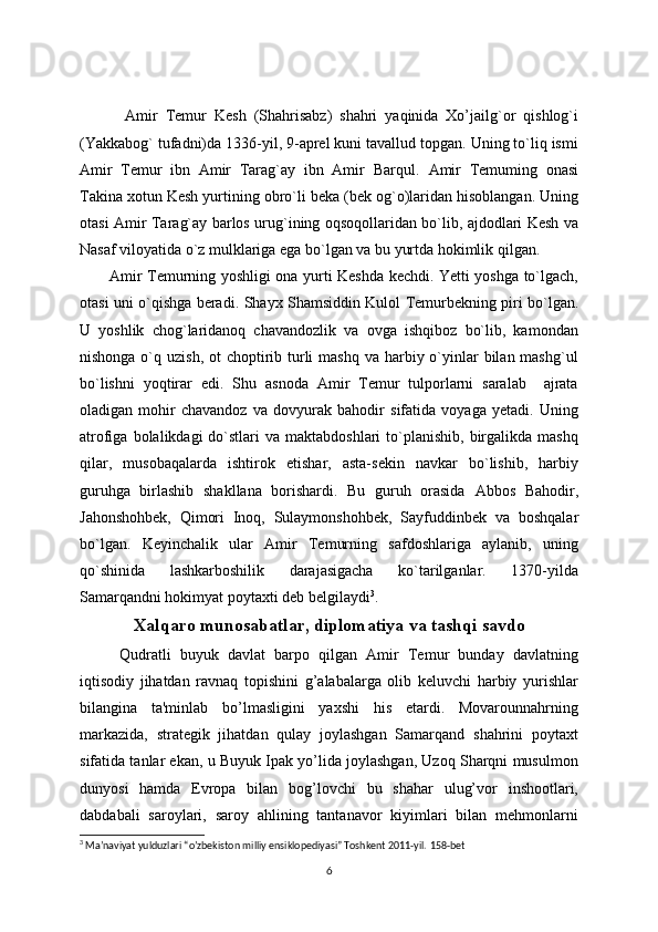 Amir Temur davlatining xalqaro munosabatlar tarixidagi o’rni