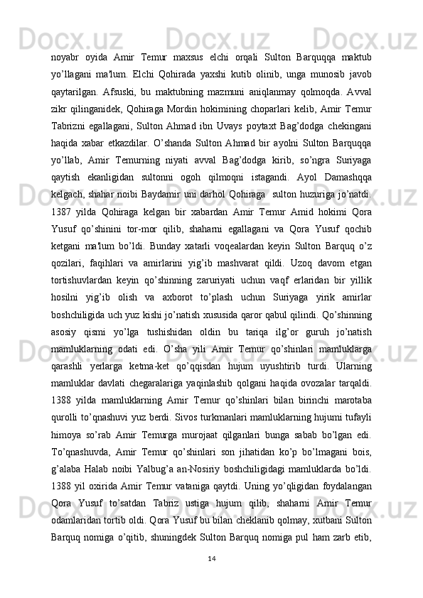 Misr sultoni ustiga yurish qilishga i j o z at etdi. 1400 yil noyabrida Amir Tеmur