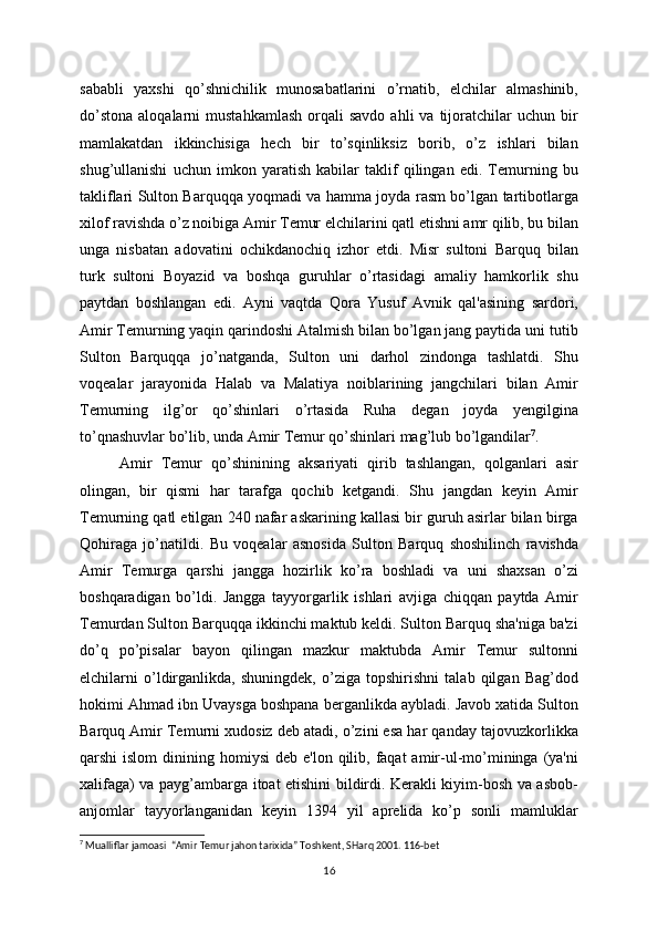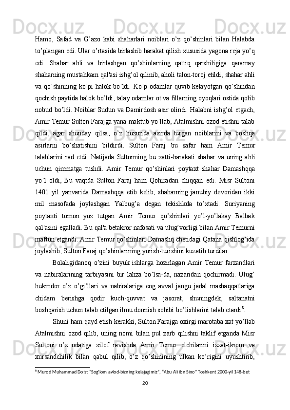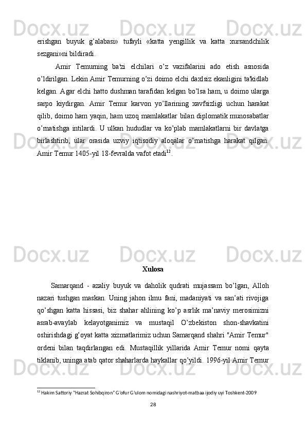 o’ch olishini» ta'kidladi. Amir Tеmur elchilari Halabga еtib kеlganlarida shahar