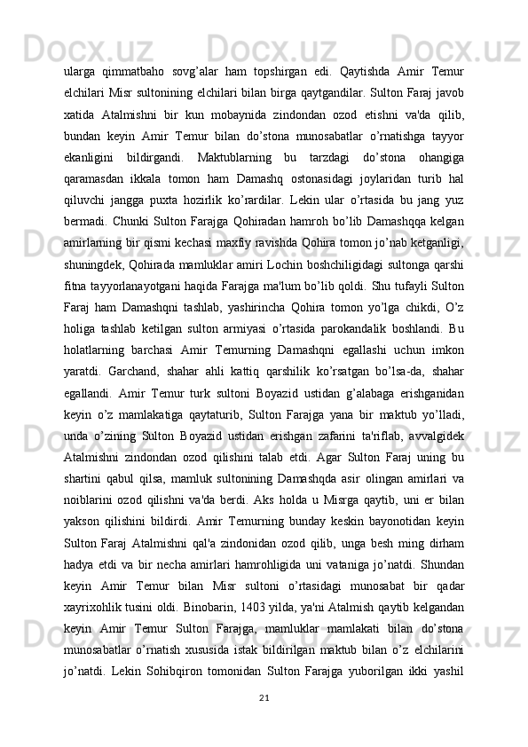 sovg’alarni   unga   jo’natish   xususida   sultondan   amri   farmon   kеldi   Amir   Tеmur