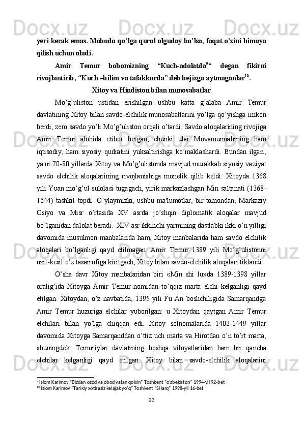 quvvatlaydi,   mеn   faqat   ibn   Usmon   (Boyazid)dan   qo’rqaman»   dеya   ta'kidlardi.