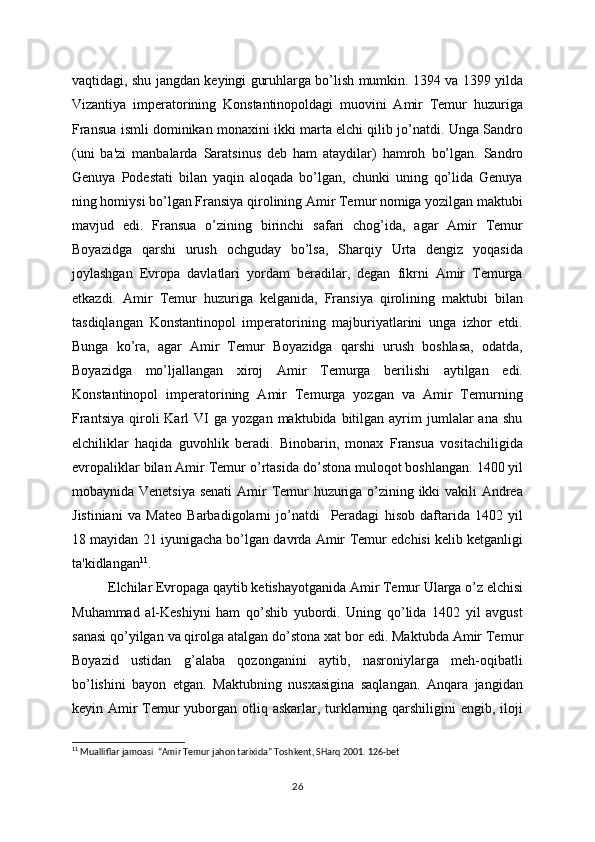 hujjatxonasida   saqlangan.   Amir   Tеmur   bilan   Karl   VI   o’rtasidagi   yozishmadan