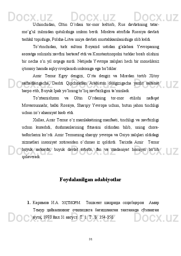 Mualliflar jamoasi    “Amir Temur jahon tarixida” Toshkent, SHarq 2001. 111-bet
