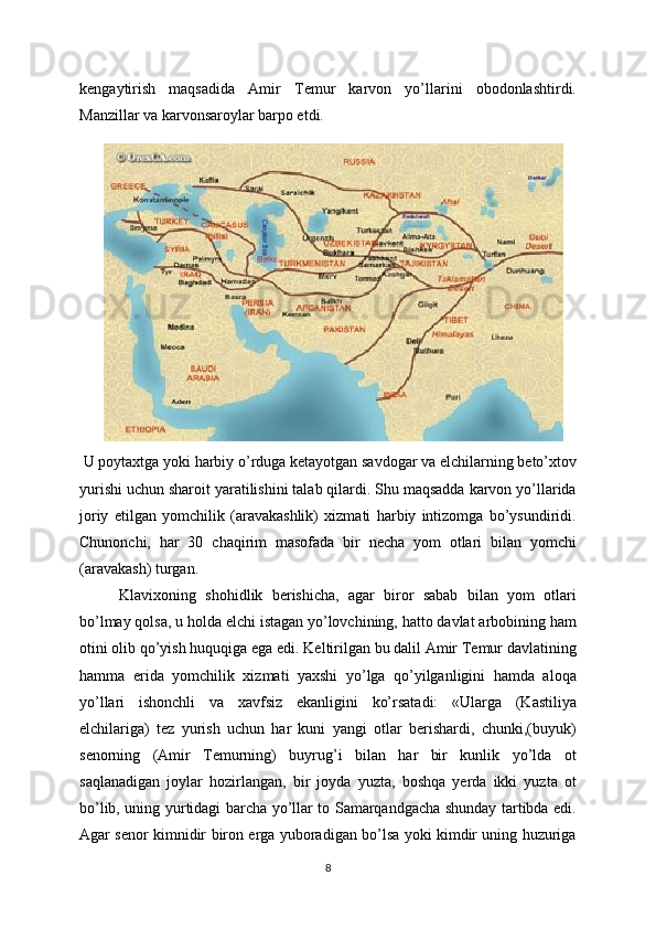 Sohibqiron,   avvalo   Buyuk   Ipak   yo’lining   karvon   so’qmoqlarini   bosqinchilar