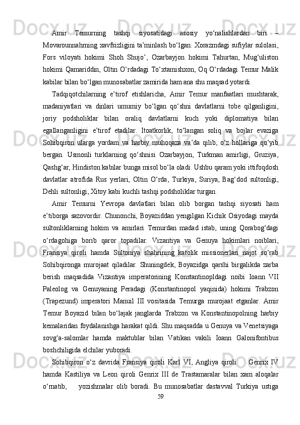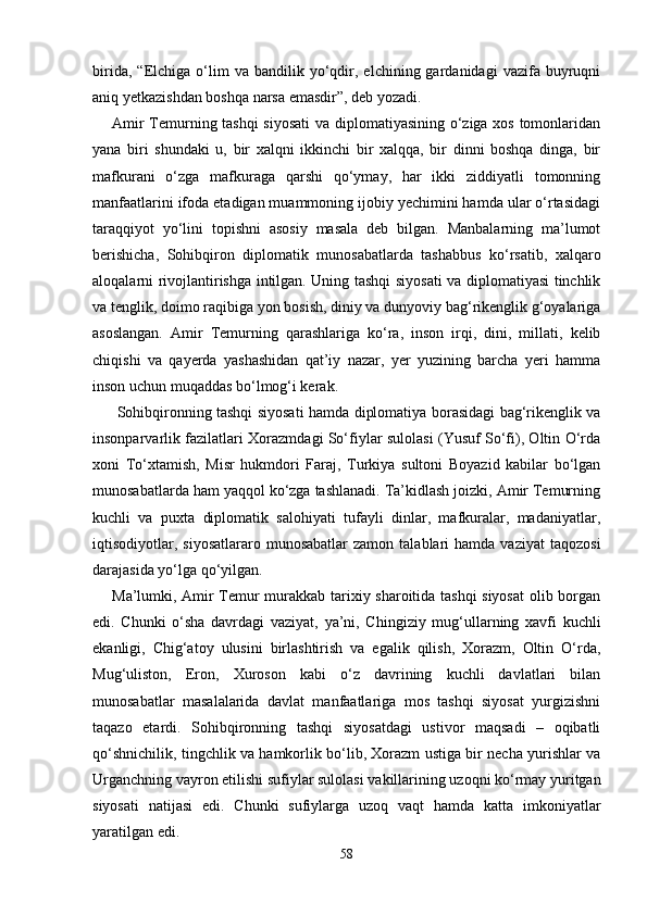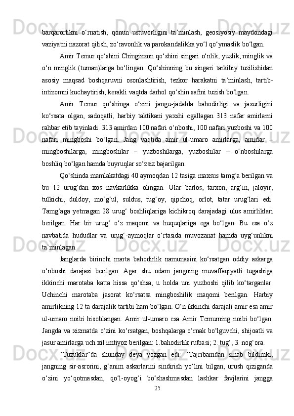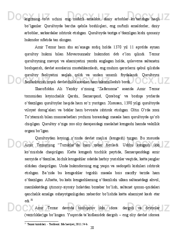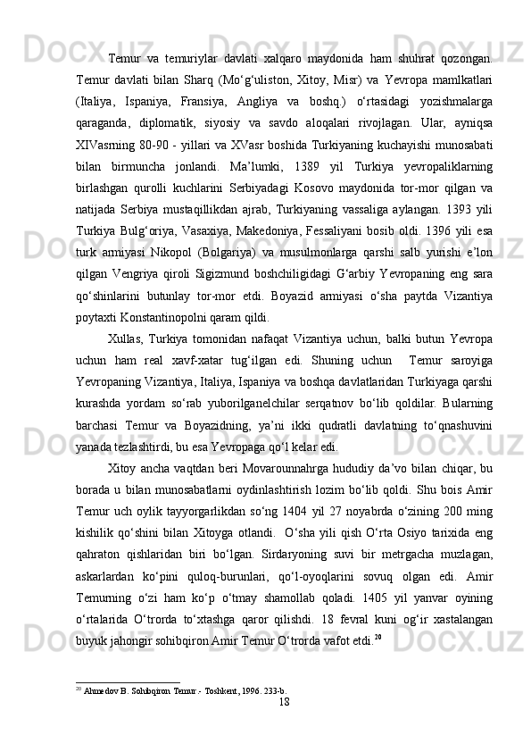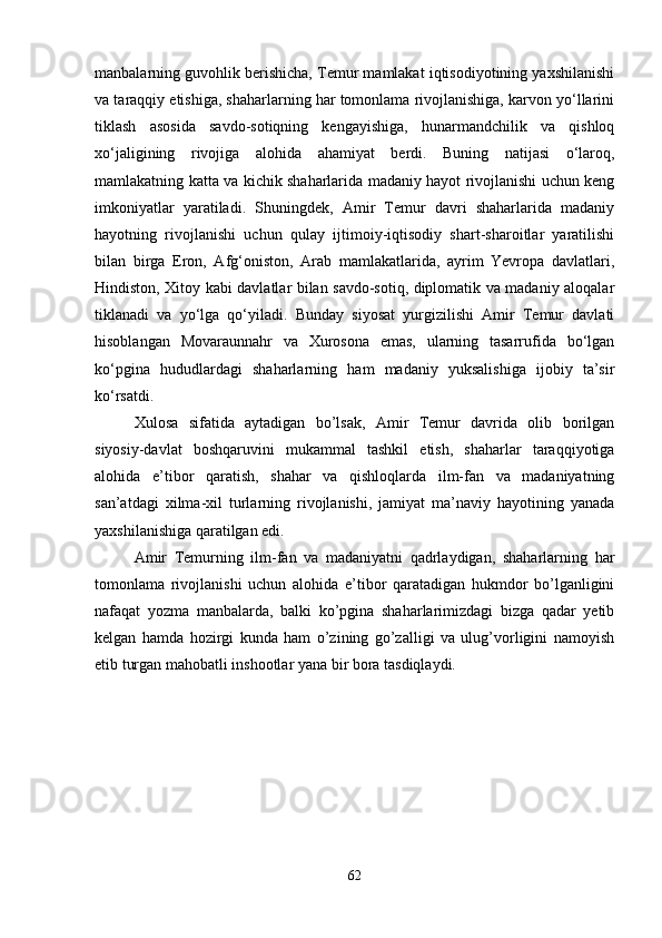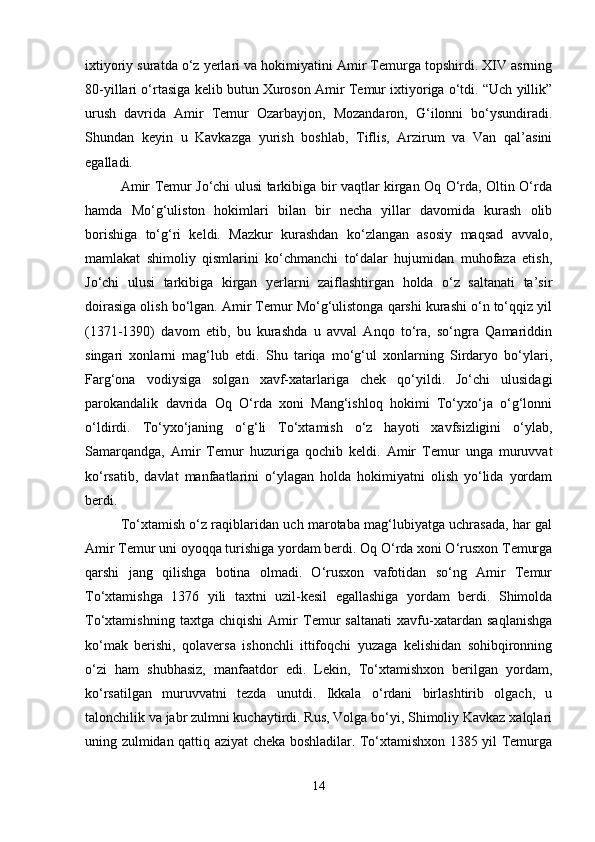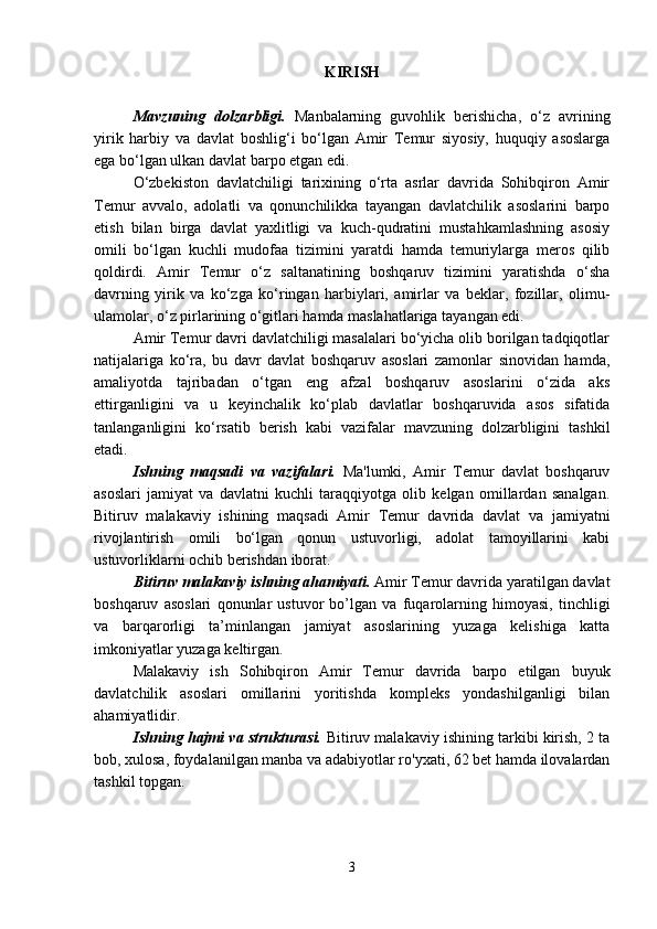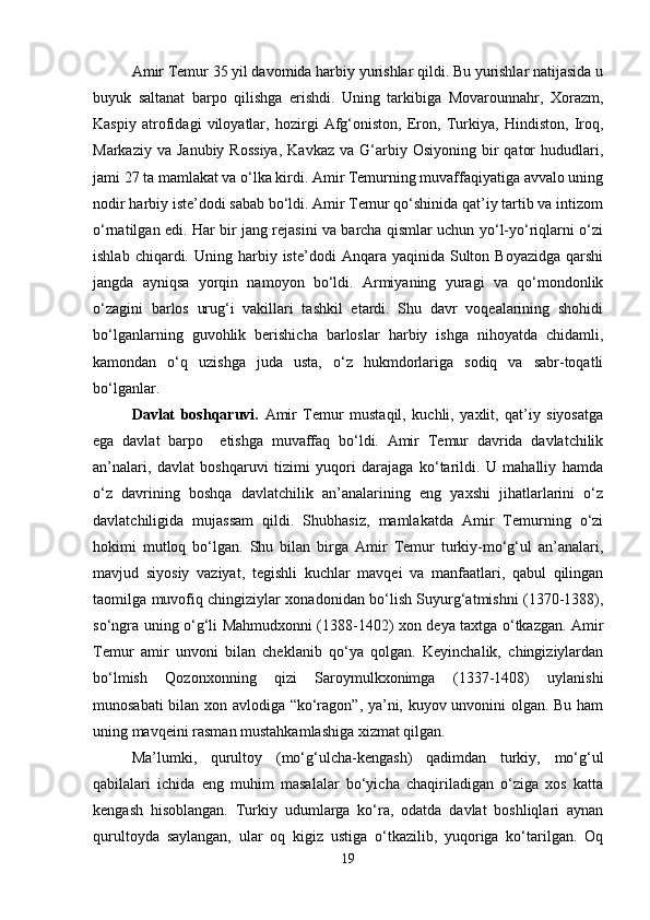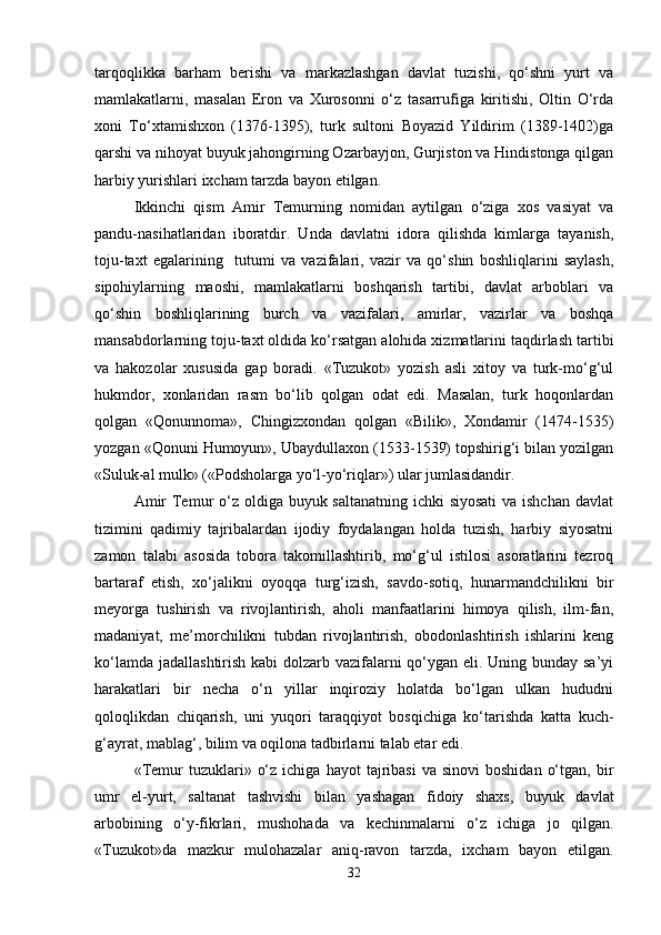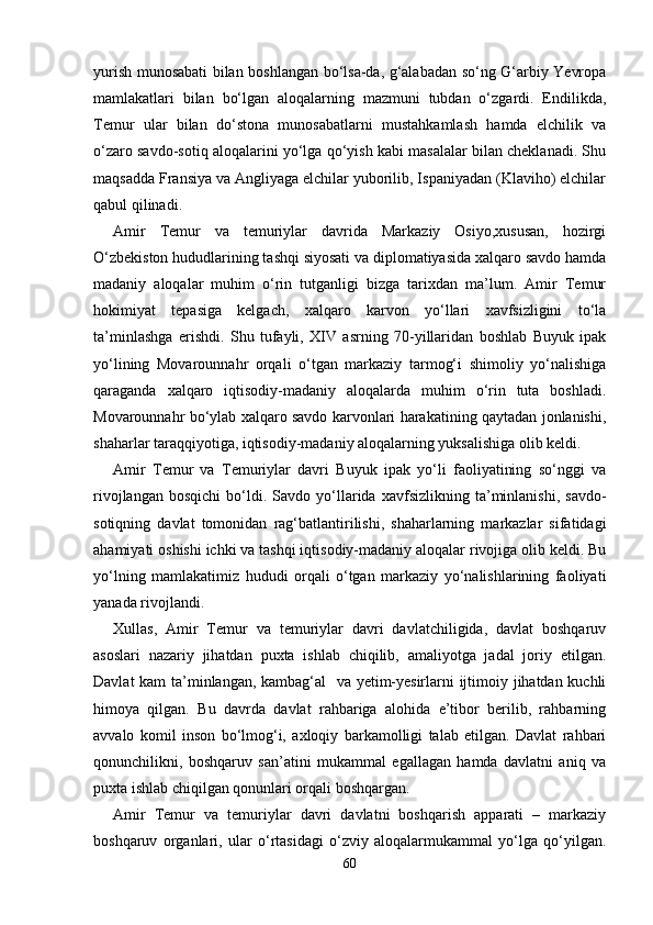Amir Temur hukmronligi davrida o'zbek davlatchiligining yuksalishi