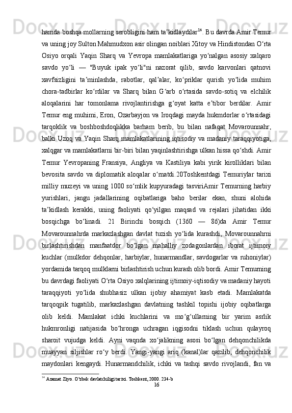 2.2.Temur davlati tashqi siyosatining asosiy yo‘nalishlari…………………….….25