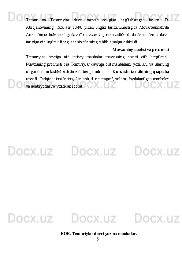 Amir Temur va Temuriylar davrida yozma manbalar tadqiqotlari