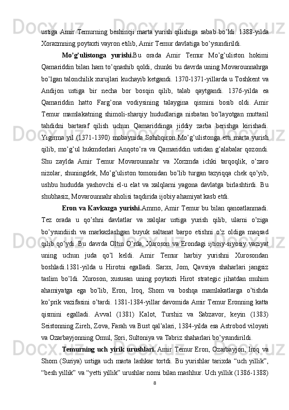 Amir Temurning harbiy yurishlari