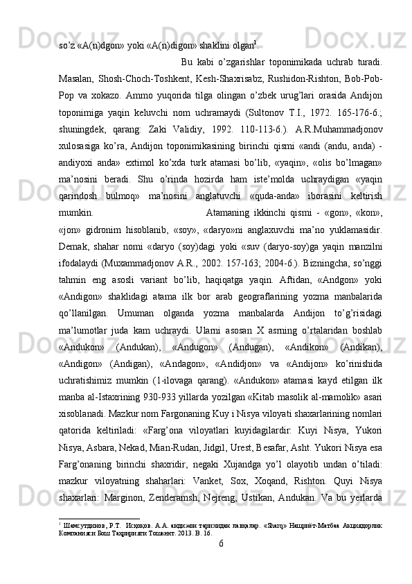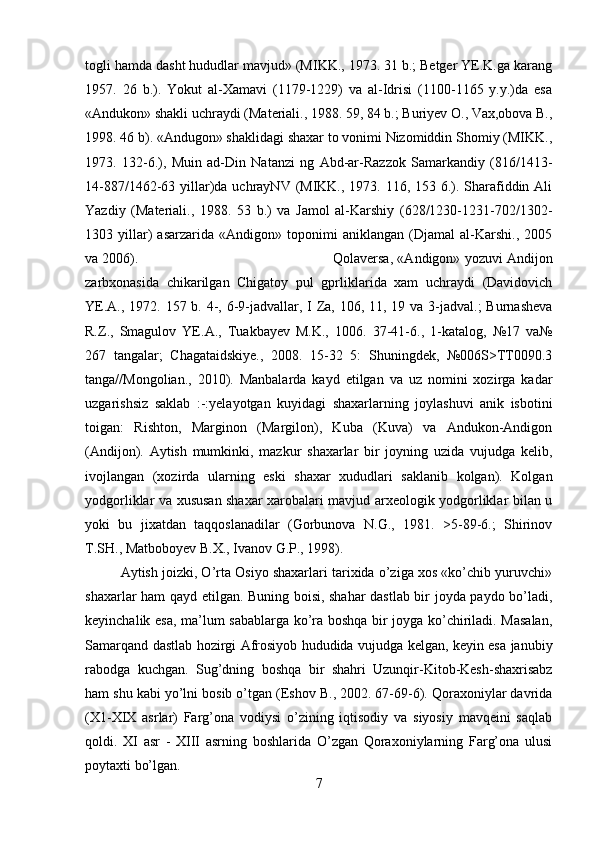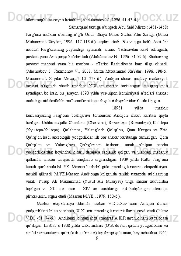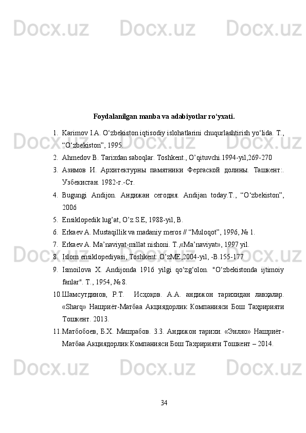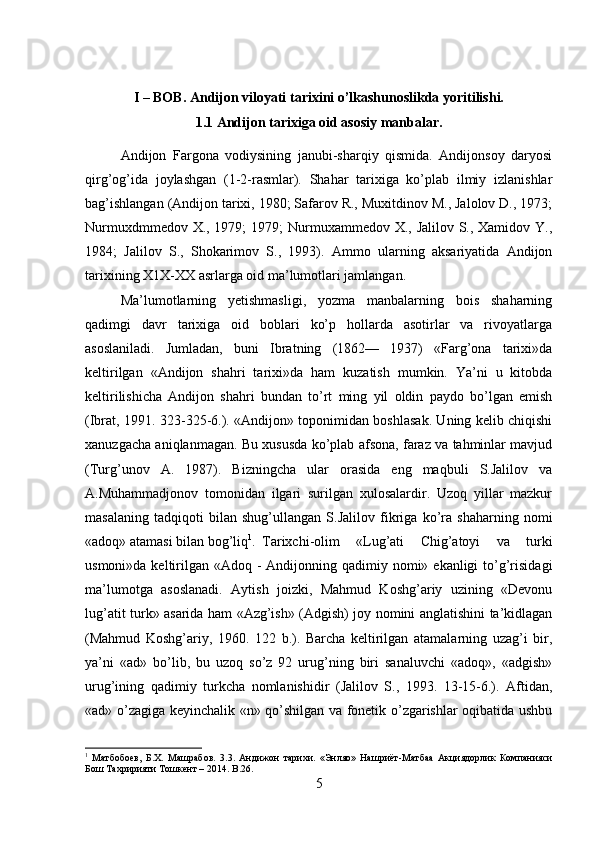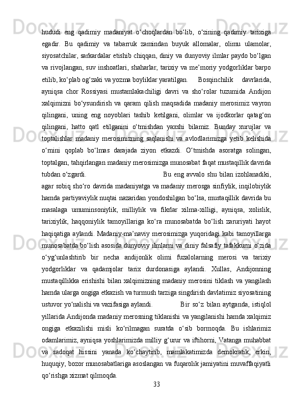 Andijon viloyati tarixini o’lkashunoslikda yoritilishi