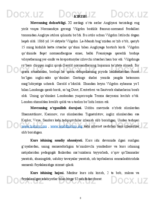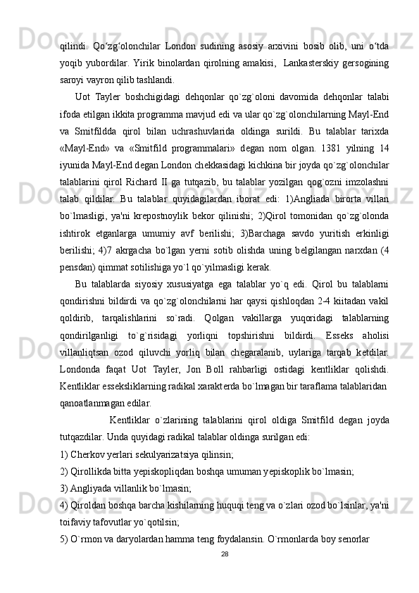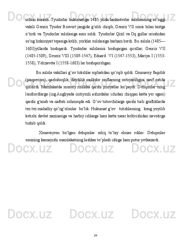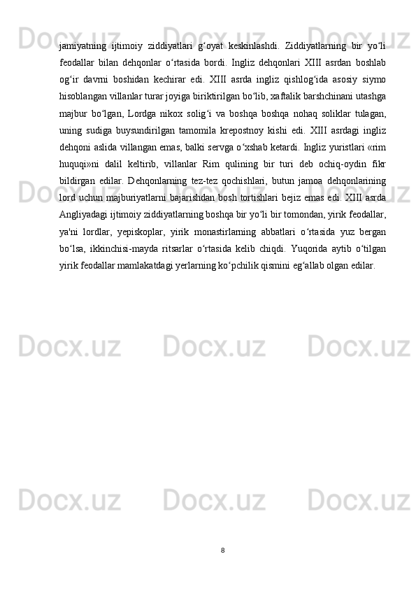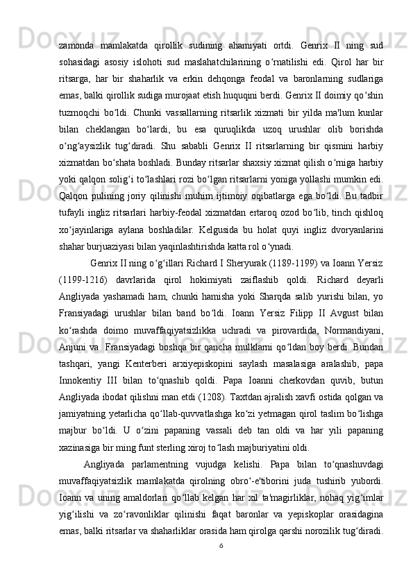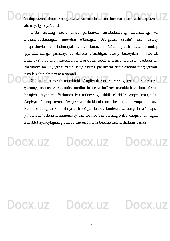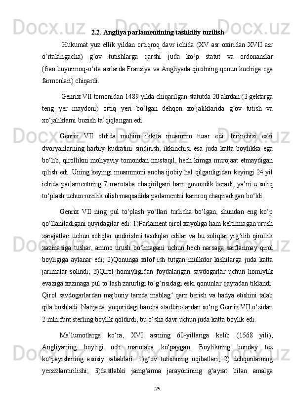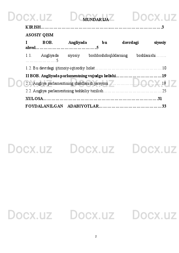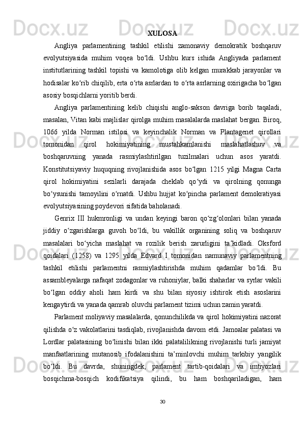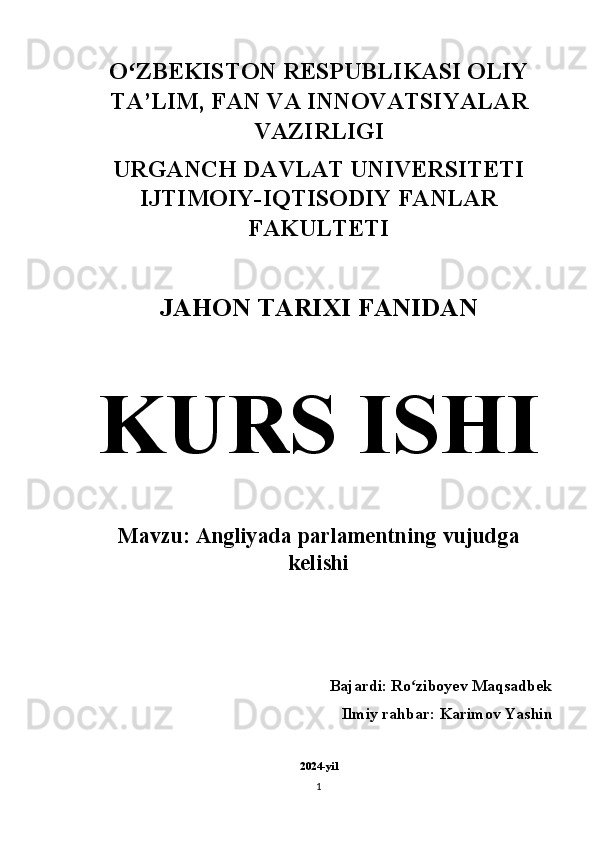 Angliyada parlamentning tashkil topishi mavzusida tayyor kurs ishi