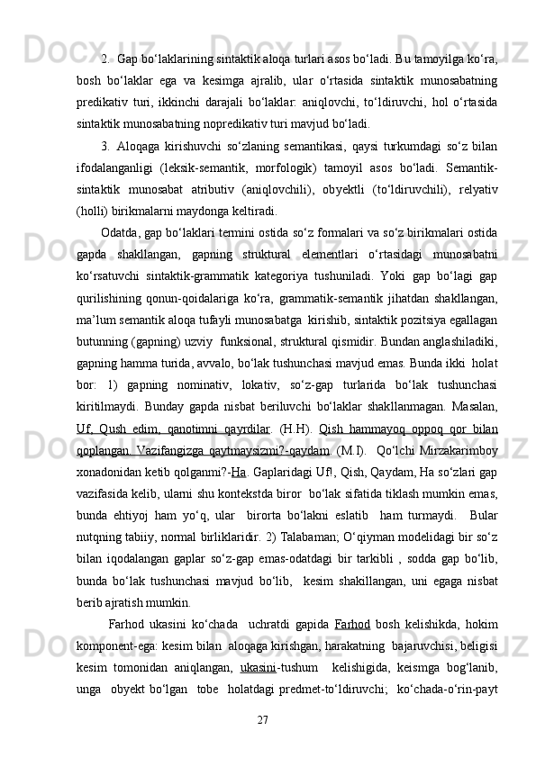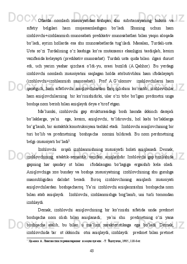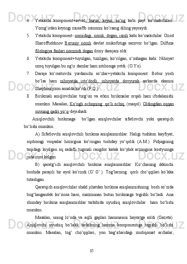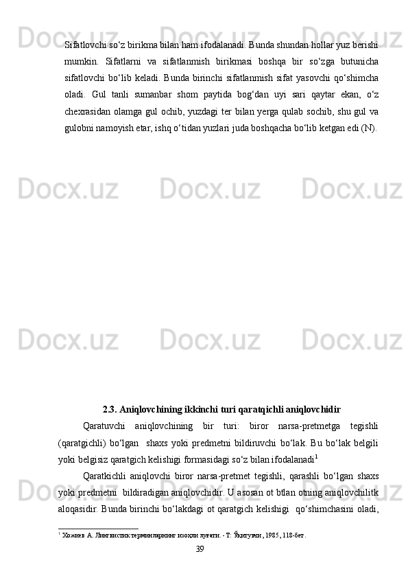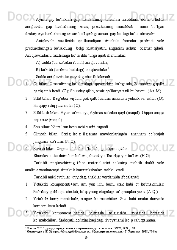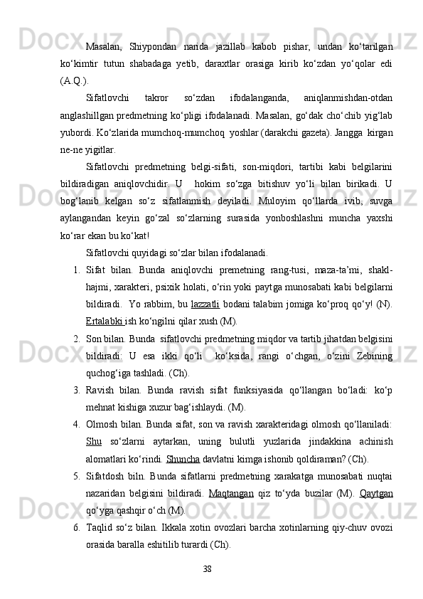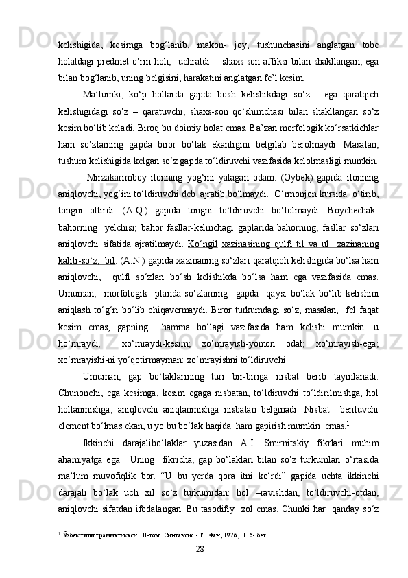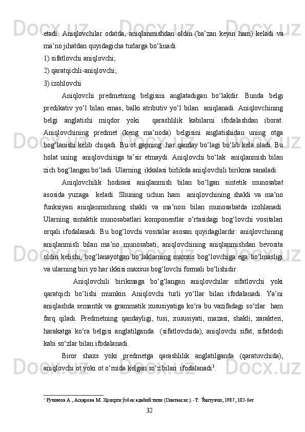 Aniqlovchi va uning o‘zbek tilida ifodalanishi