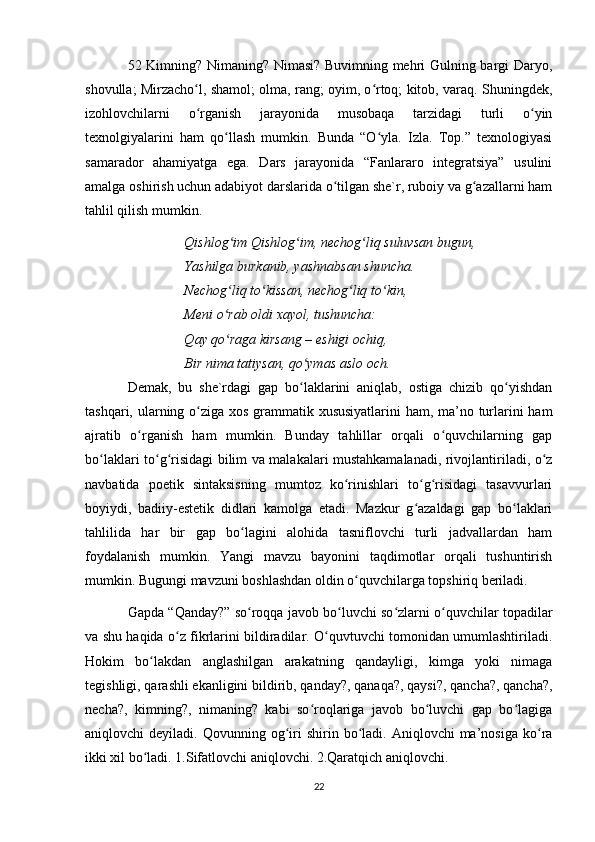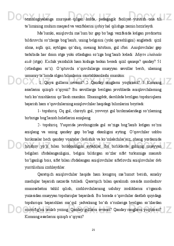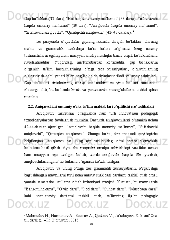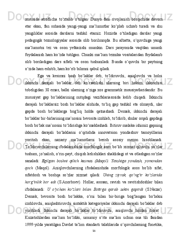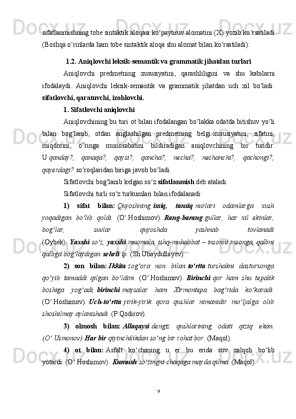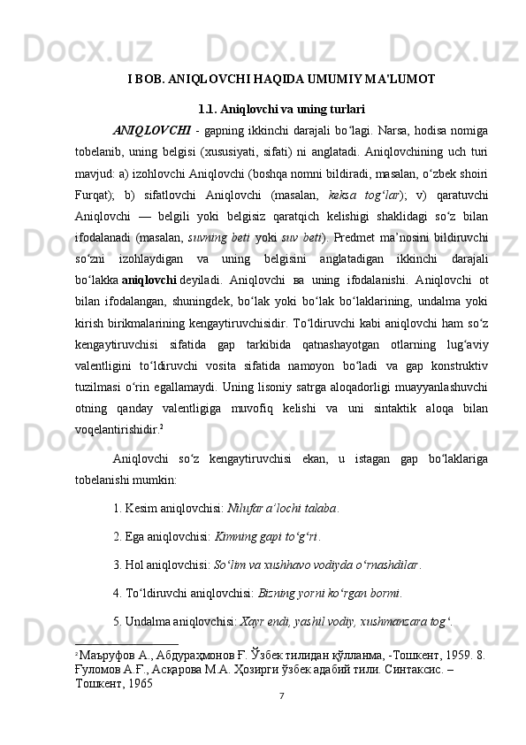 ANIQLOVCHI VA UNING OʻZBEK TILSHUNOSLIGIDA TADQIQI