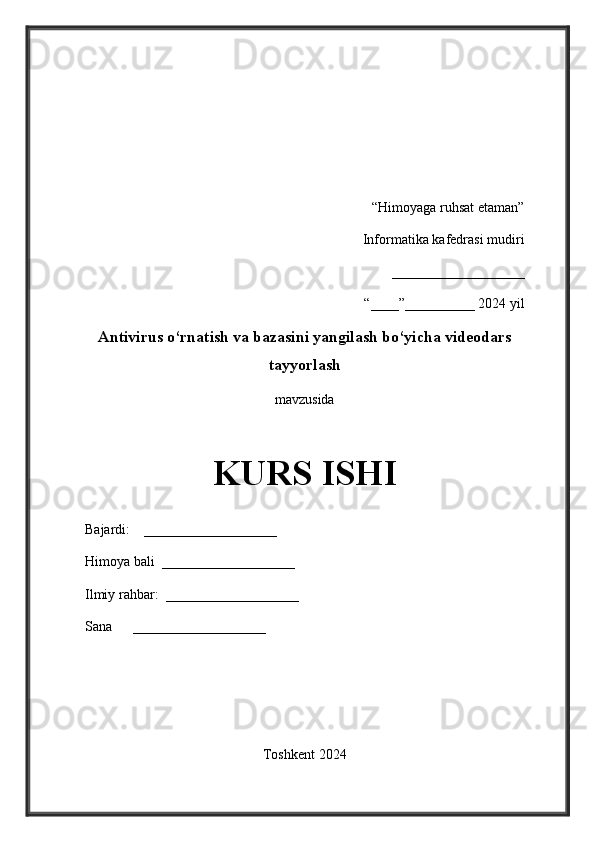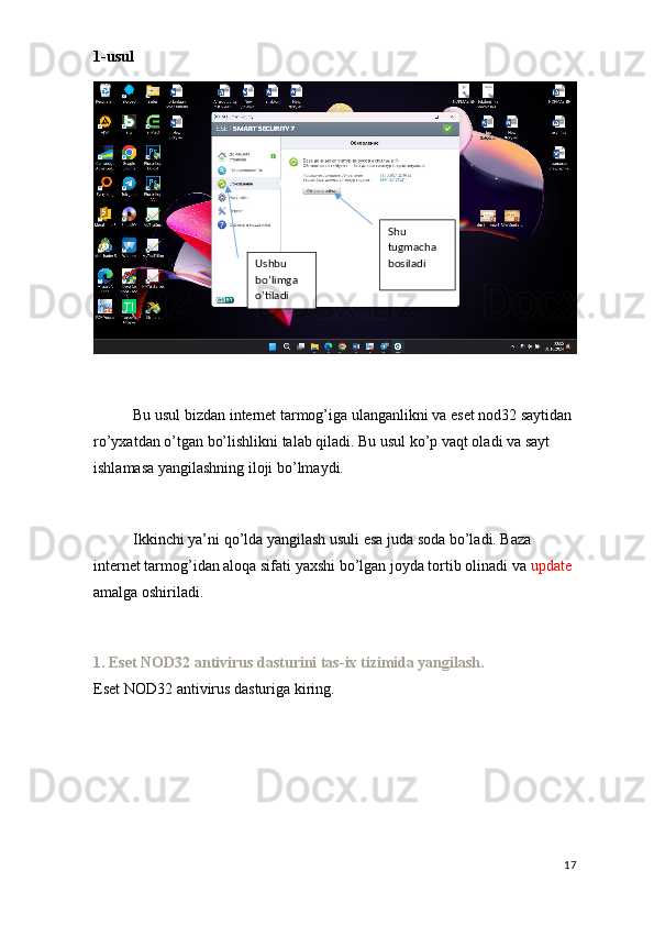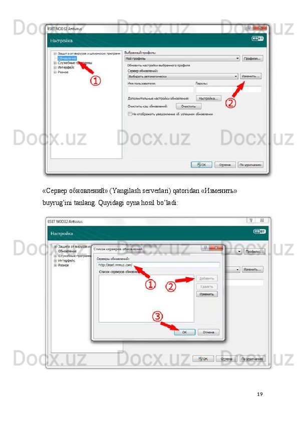 Antivirus dasturlarini o'rnatish va baza yangilanishlarni o'rnatish bo'yicha ma'lumotlar
