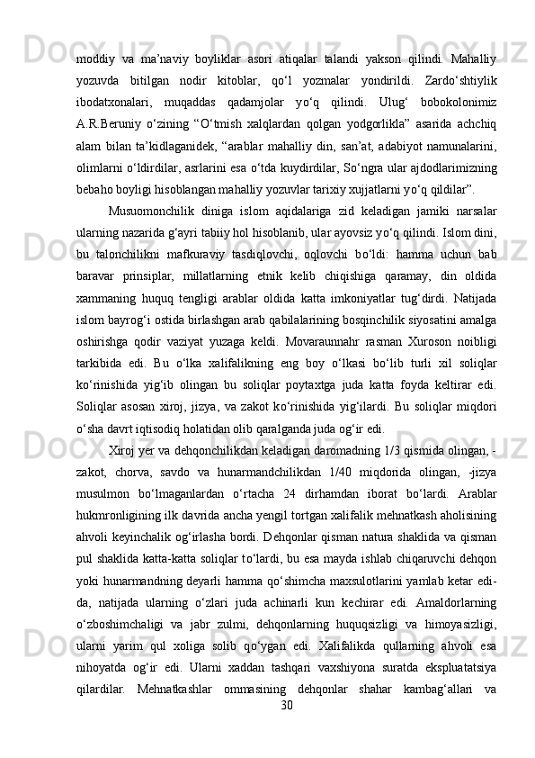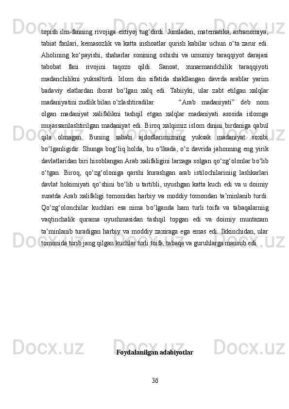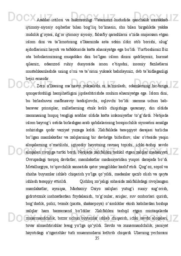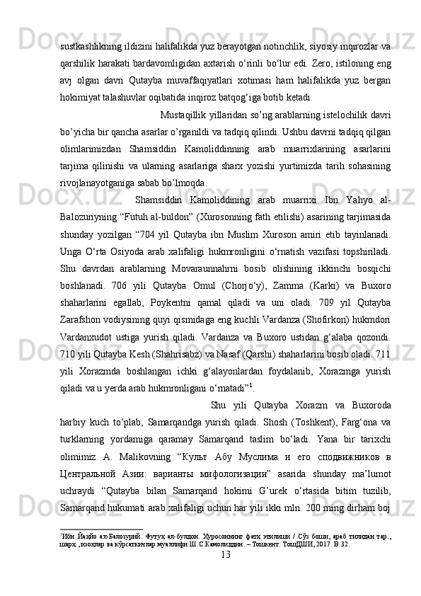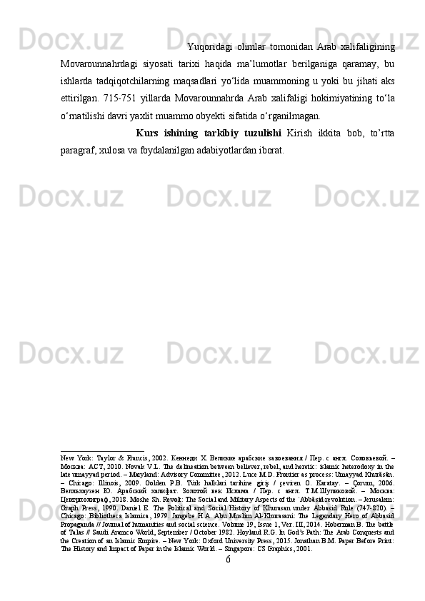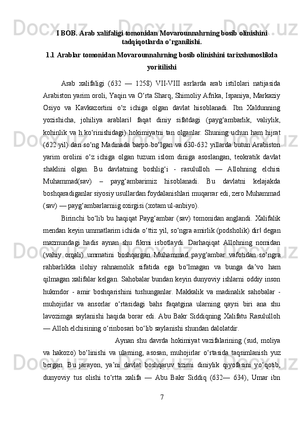Ushbu kurs ishi Arablar istelosi davrini tarixshunoslikda o'rganilishi