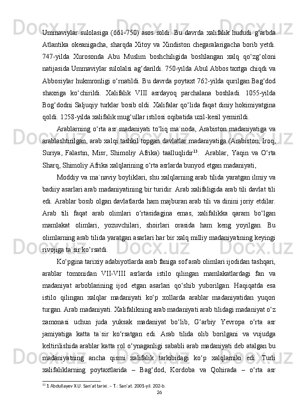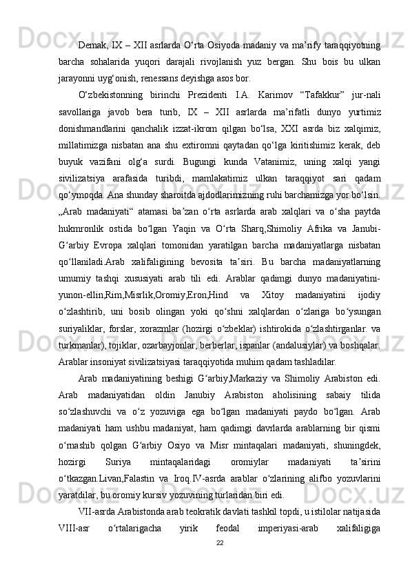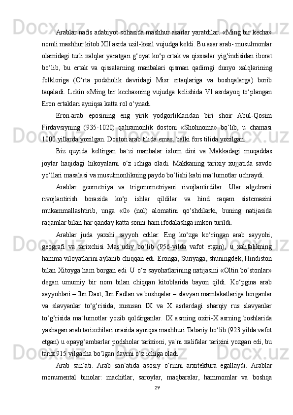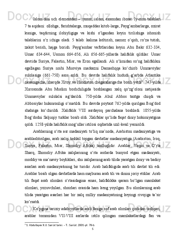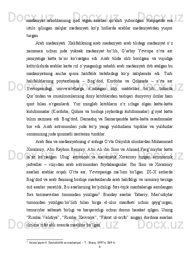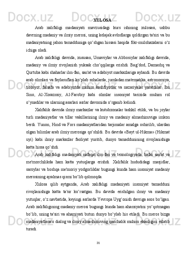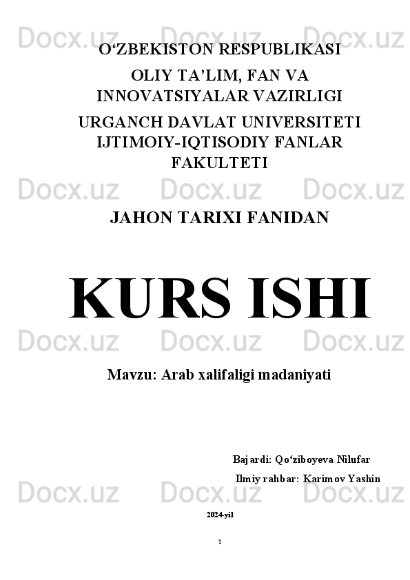 Arab xalifaligi madaniyati mavzusidagi tayyor kurs ishi