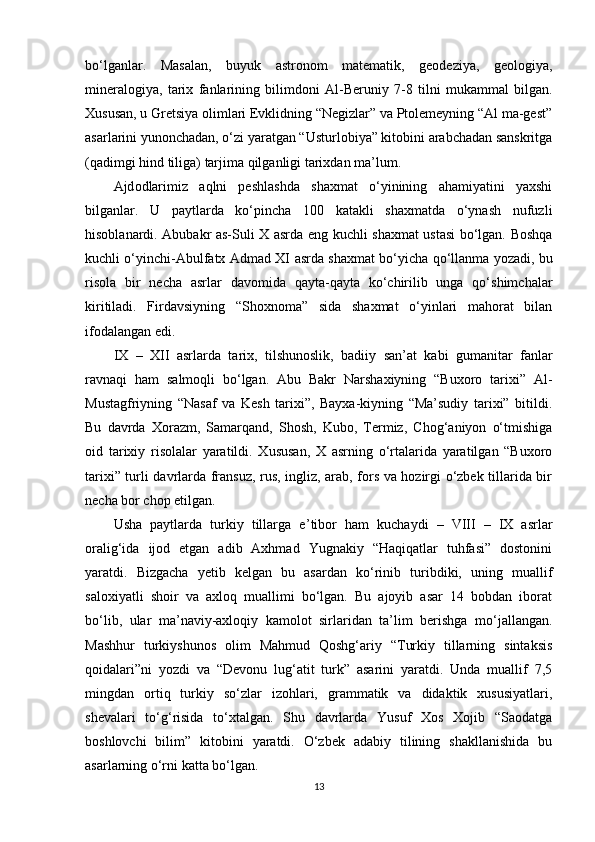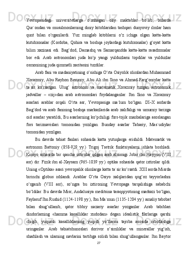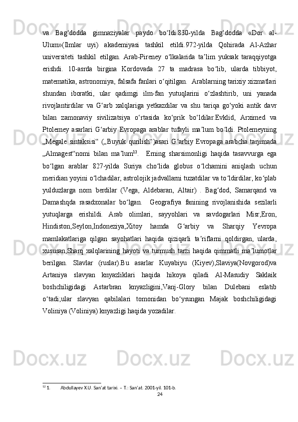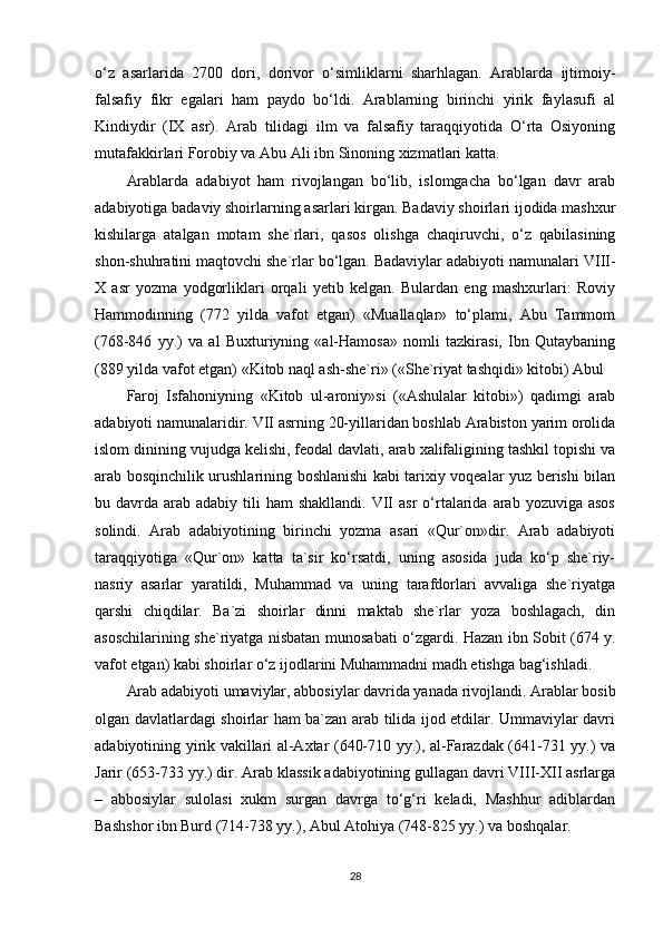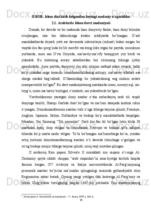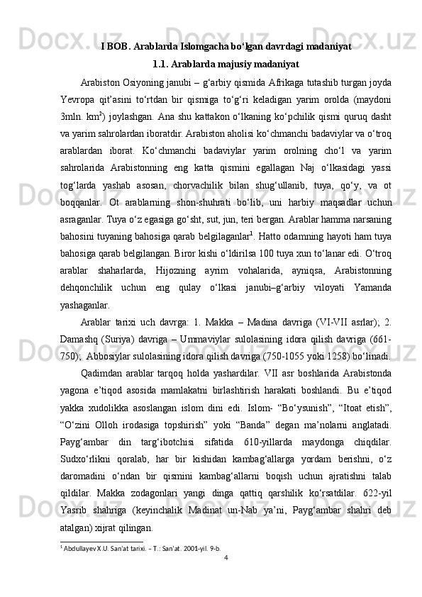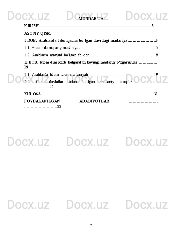 Arab xalifaligi madaniyati mavzusidagi tayyor kurs ishi