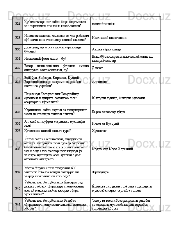 ҳисобланади?  2 Чи  997 «Дунёда турмоқ учун дунёвий фан ва илм