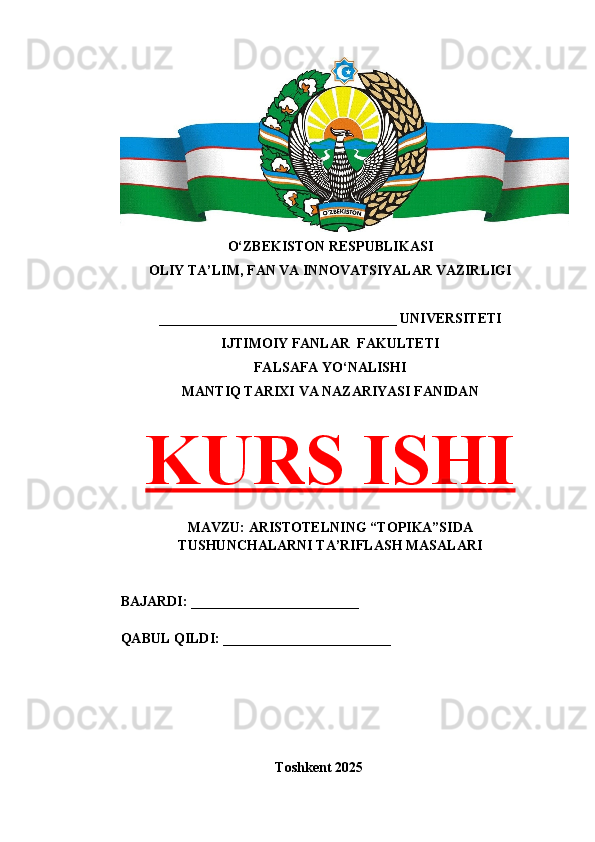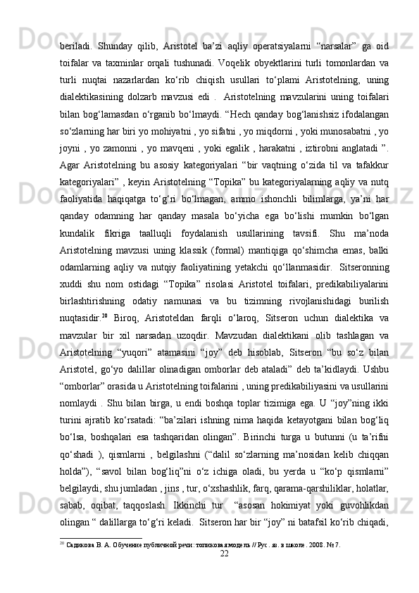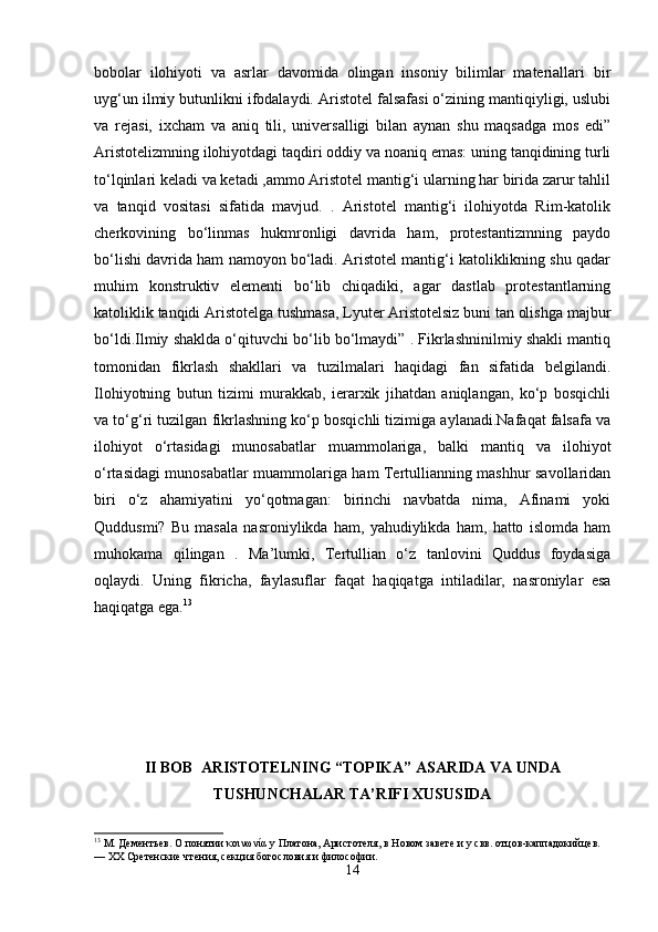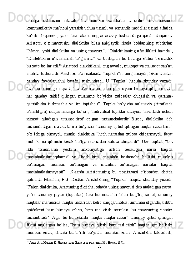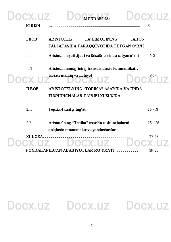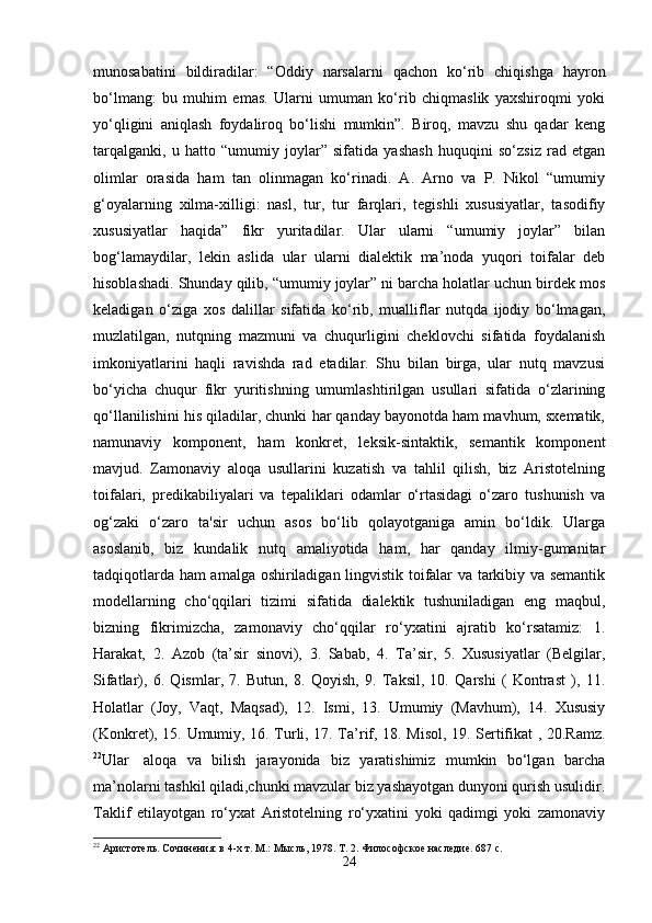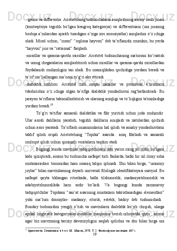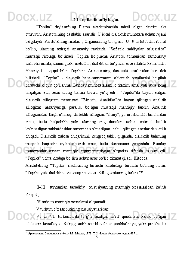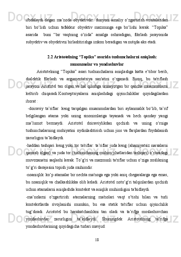 | II BOB | ARISTOTELNING “TOPIKA” ASARIDA VA UNDA TUSHUNCHALAR TA’RIFI XUSUSIDA | |||