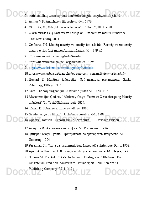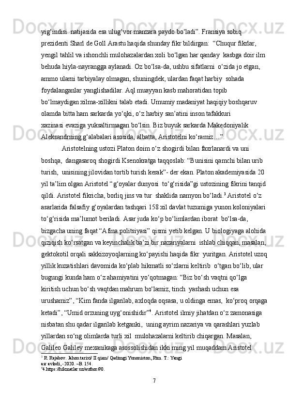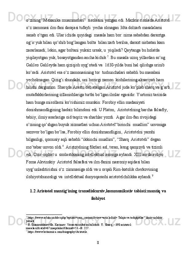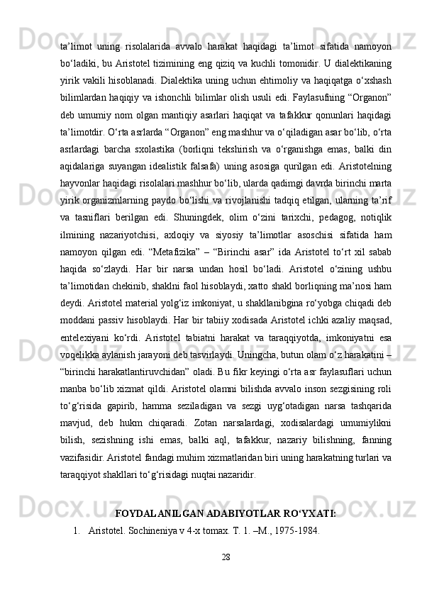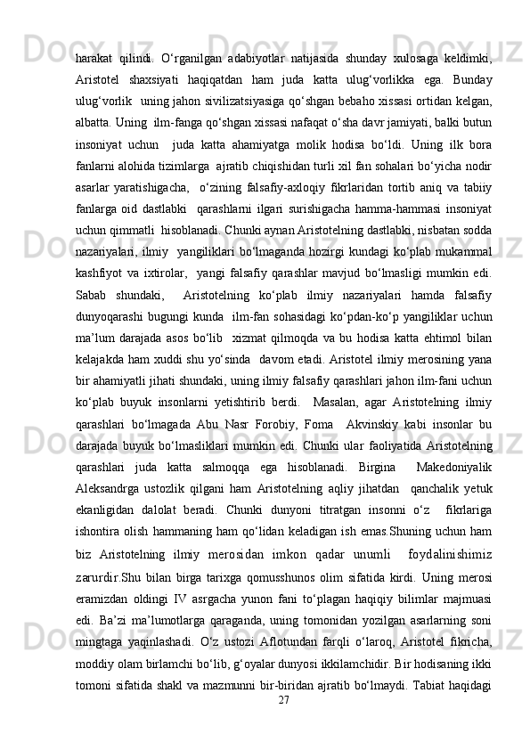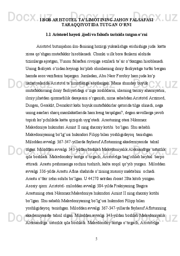 | I BOB | ARISTOTEL TA’LIMOTINING JAHON FALSAFASIDA TARAQQIYOTIDA TUTGAN O‘RNI | |||