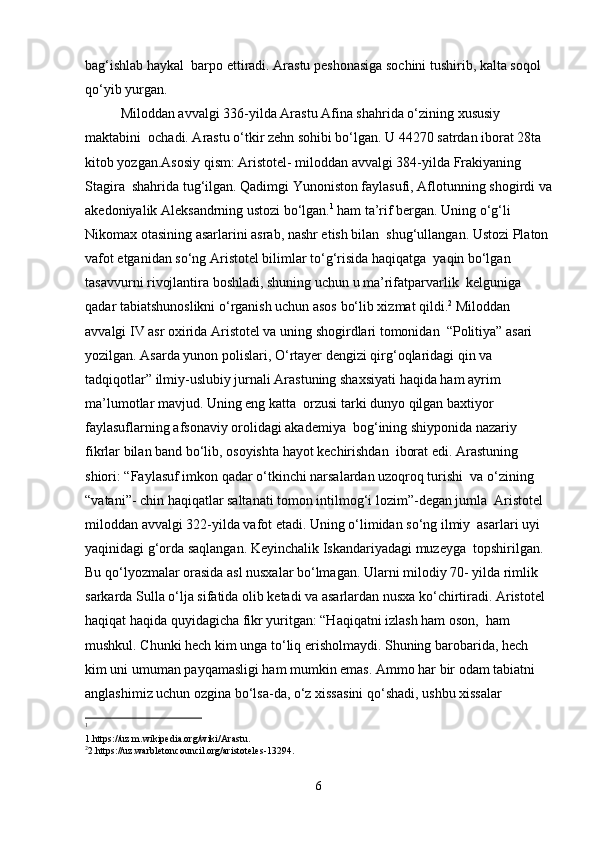 | 1.1. | Aristotel hayoti ,ijodi va falsafa tarixida tutgan o‘rni | |||