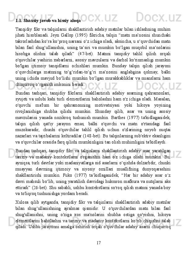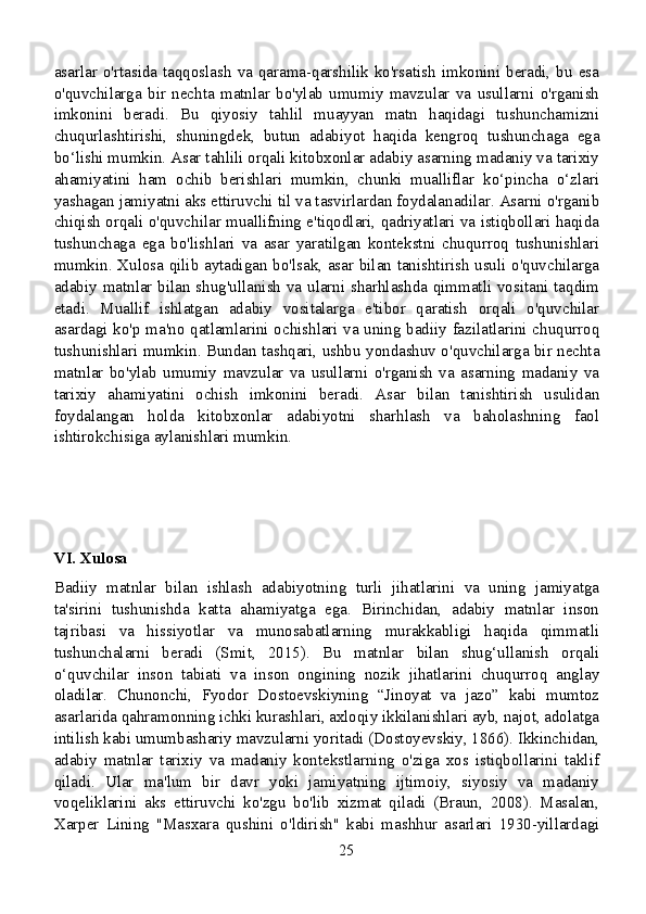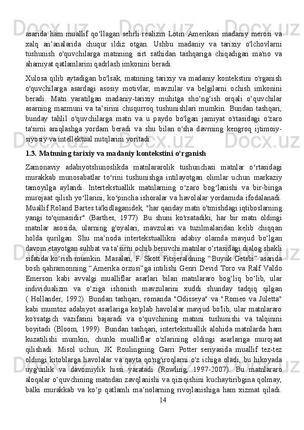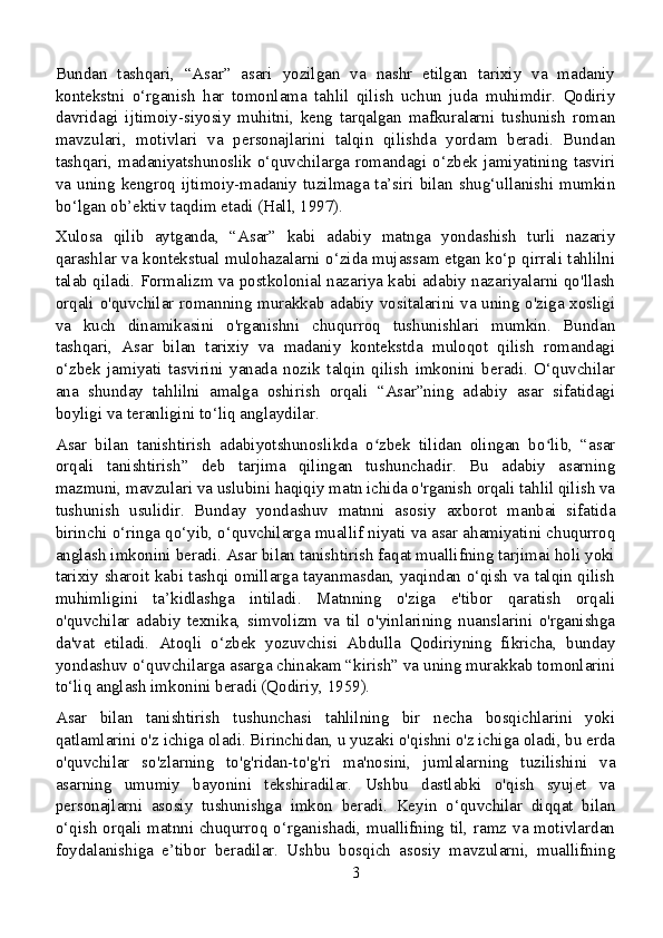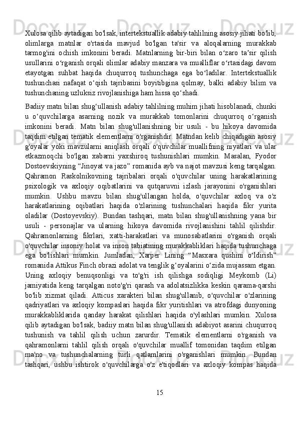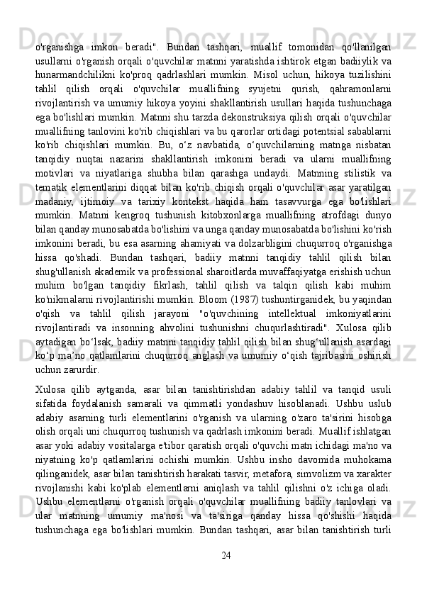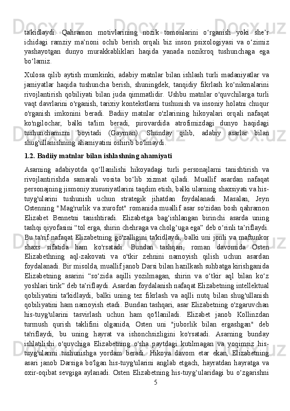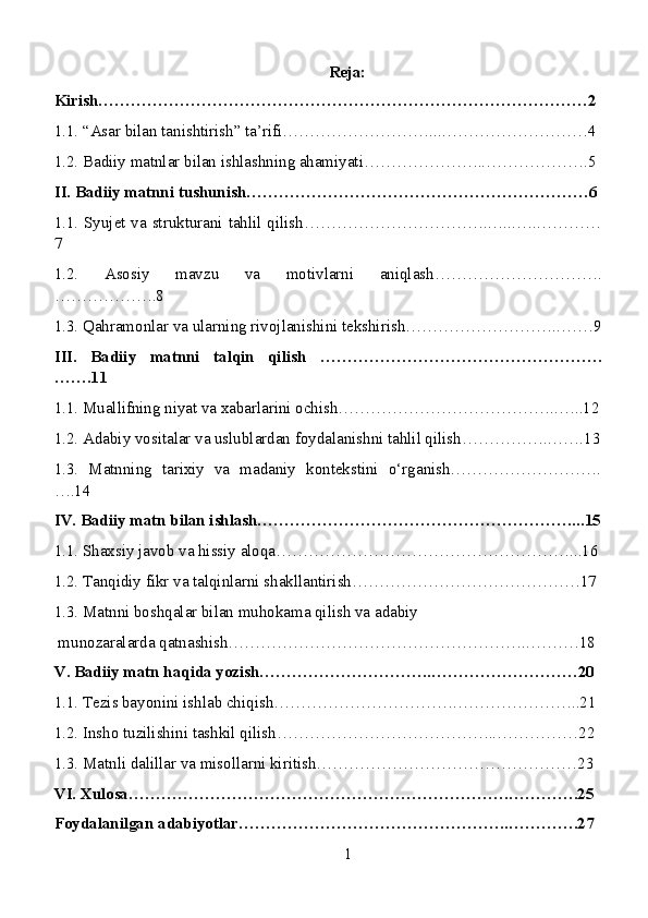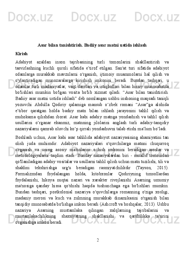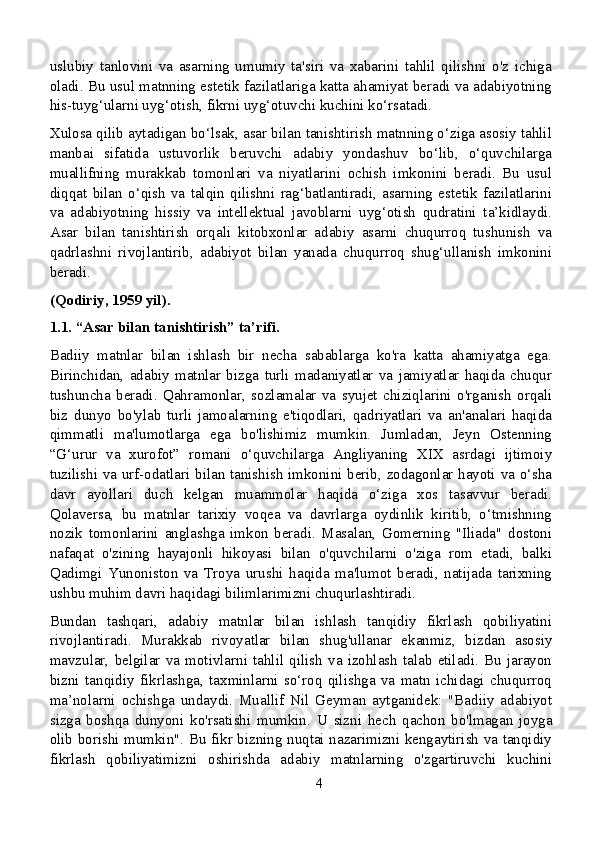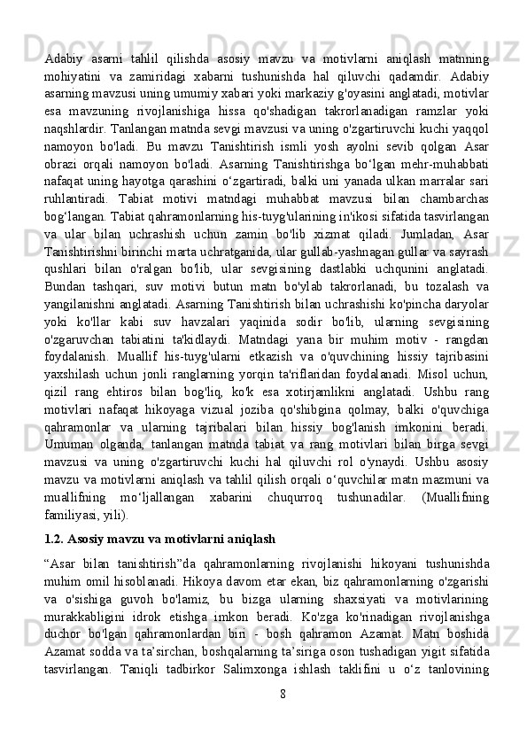 Asar bilan tanishtirish. Badiiy asar matni ustida ishlash