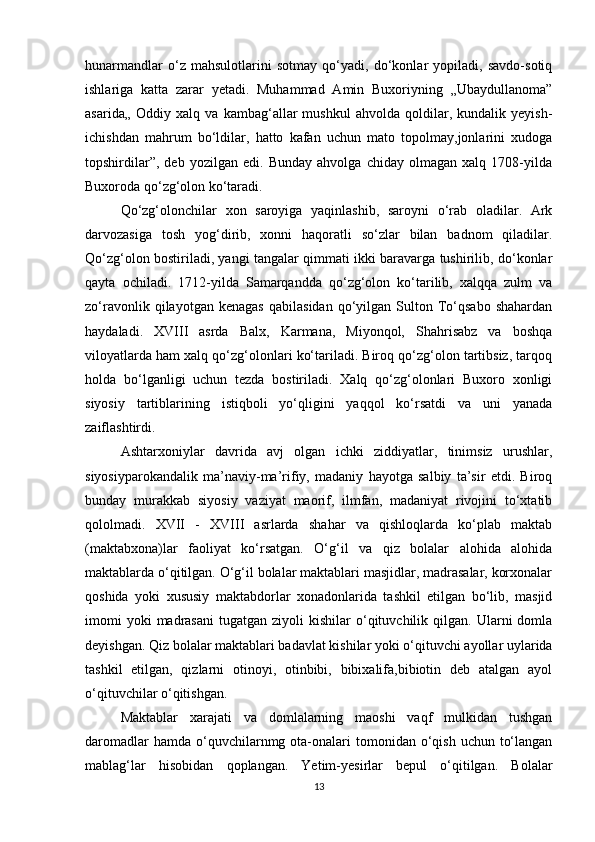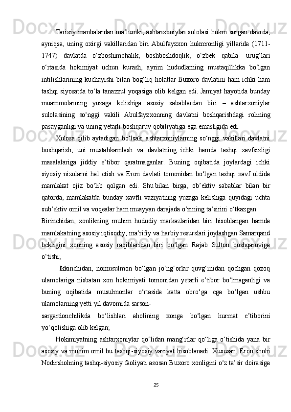 Ashtarxoniylar davlatining inqirozga uchrashi