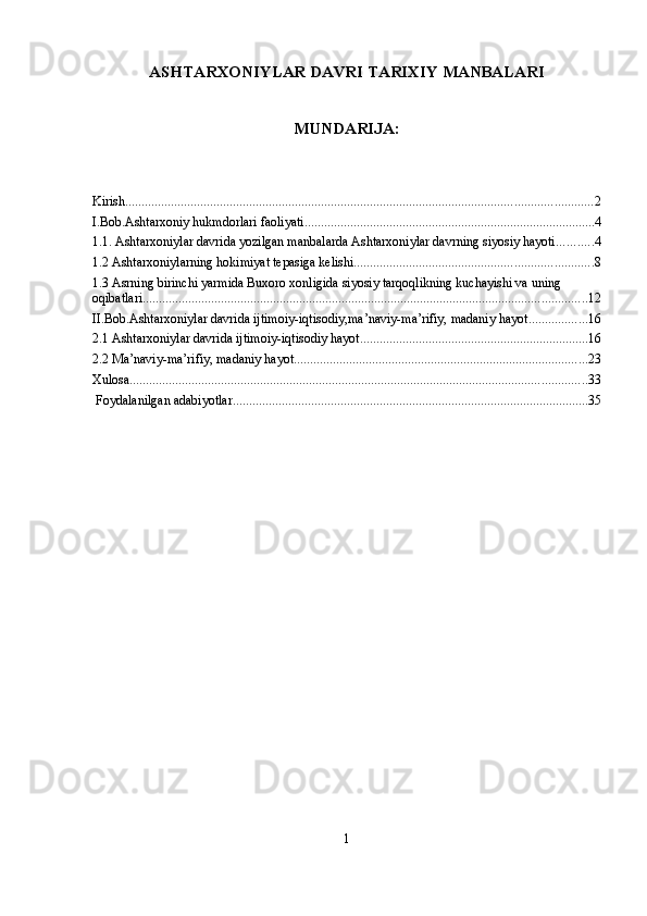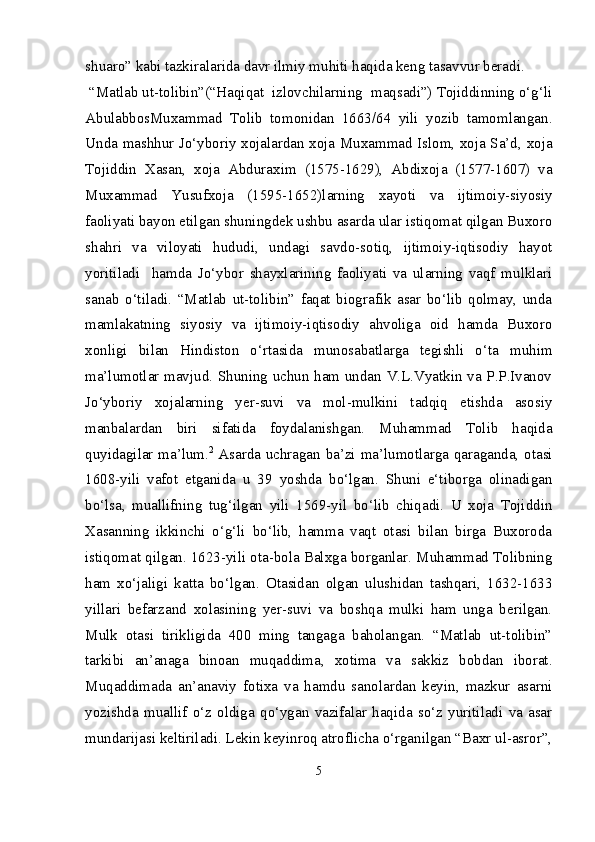 ASHTARXONIYLAR DAVRI TARIXIY MANBALARI