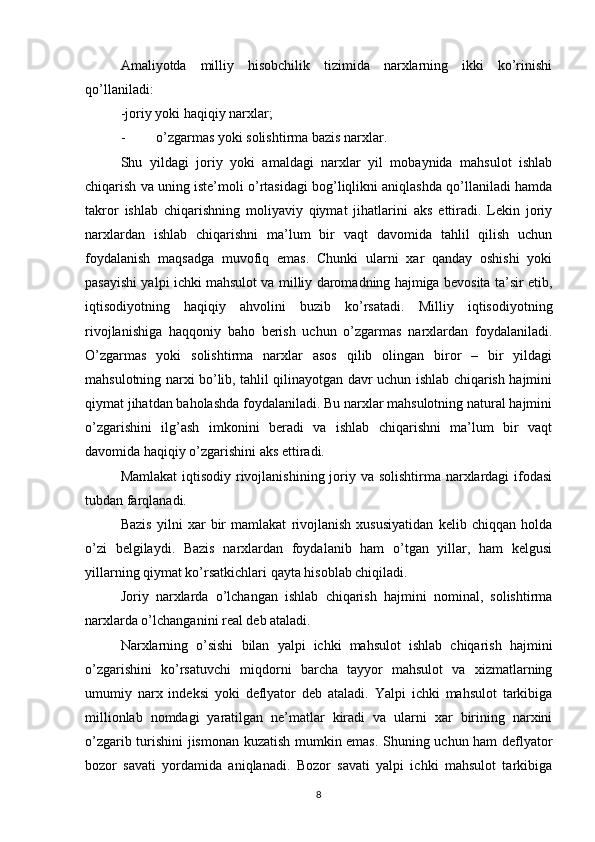 Asosiy makroiqtisodiy ko’rsatkichlar va ularni tahlili qilish xususiyatlari