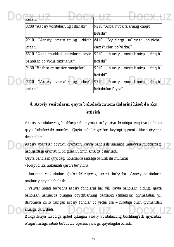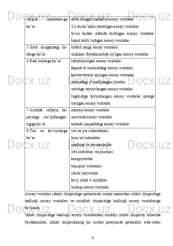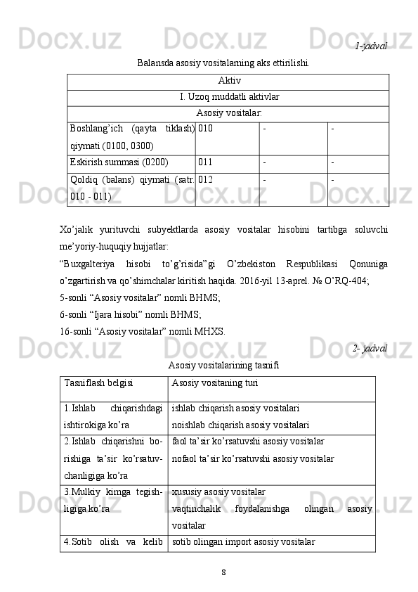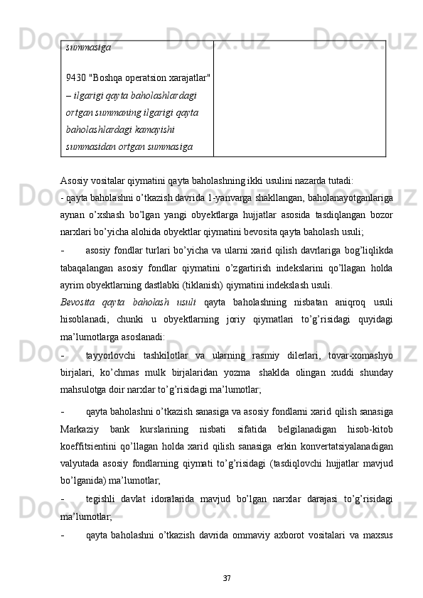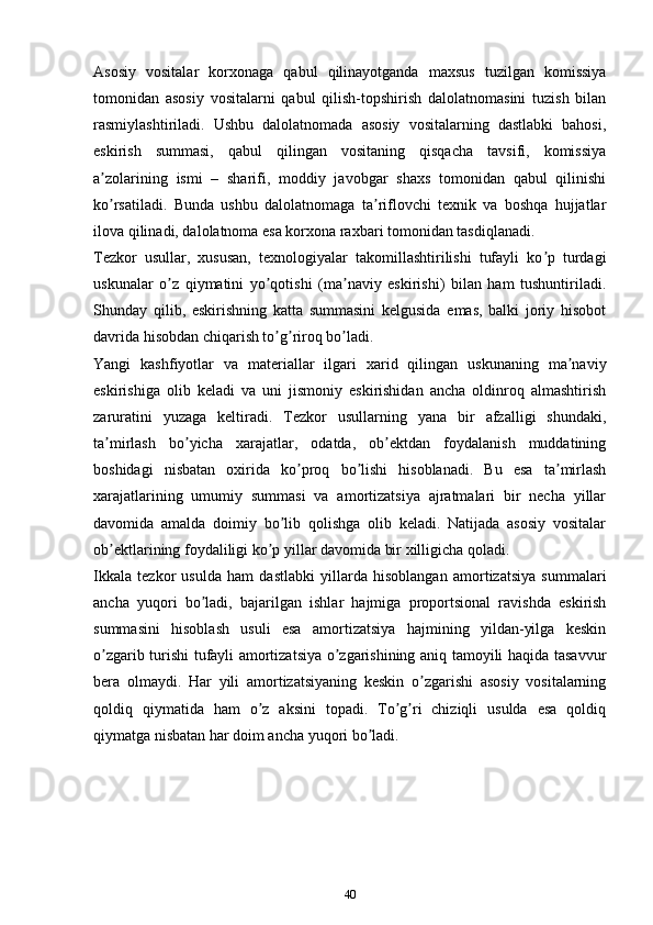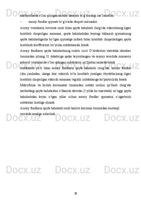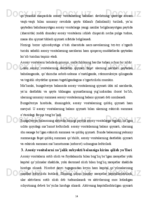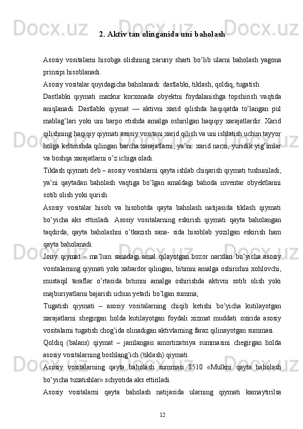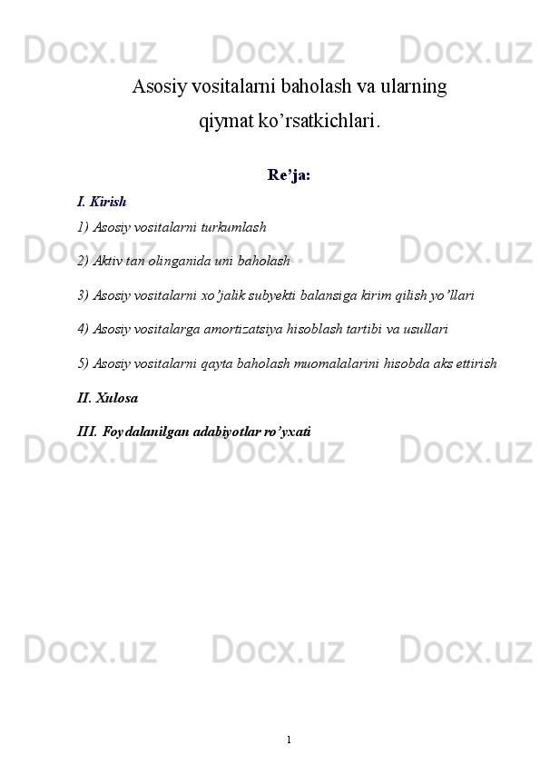 Asosiy vositalarni baholash va ularning qiymat ko'rsatgichlari