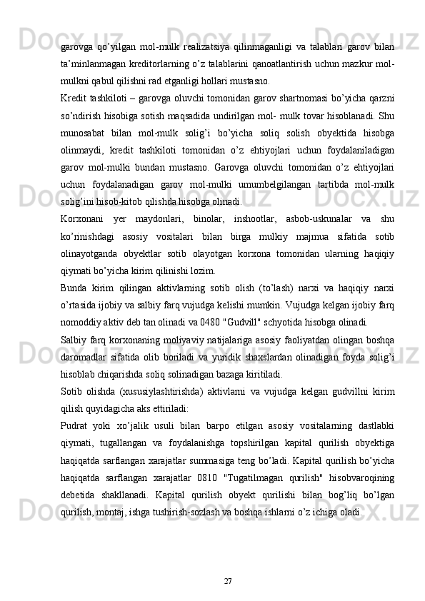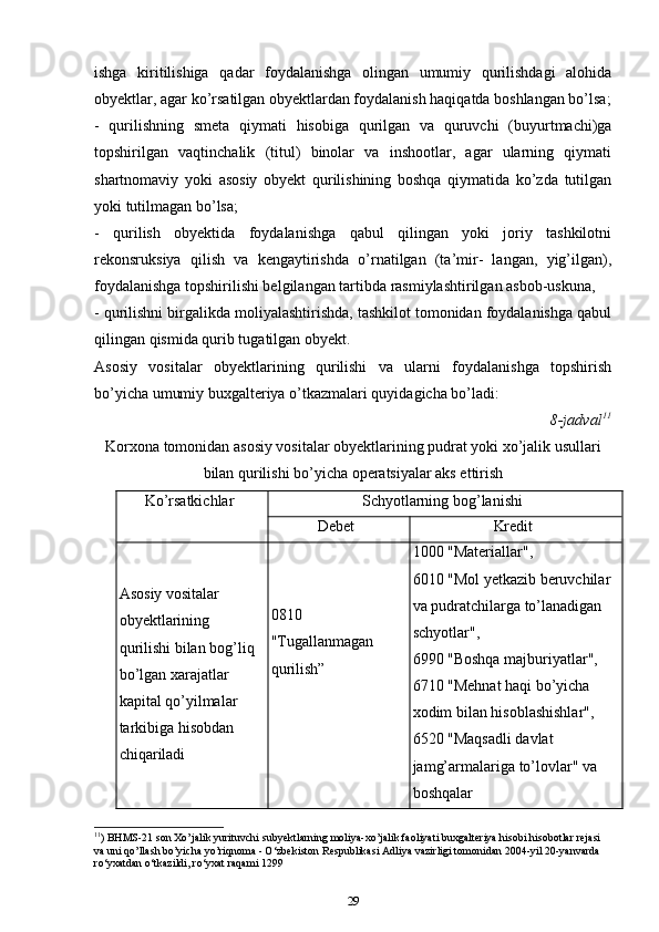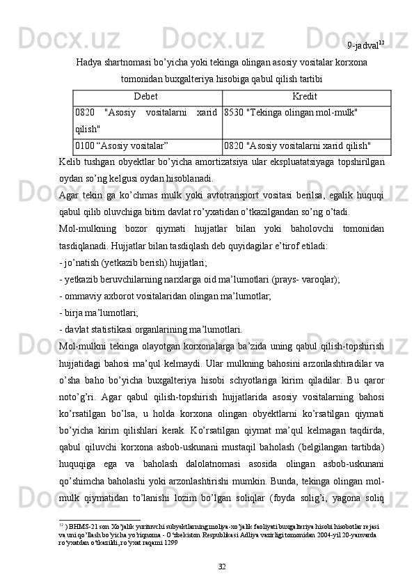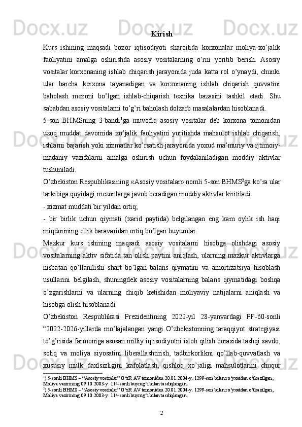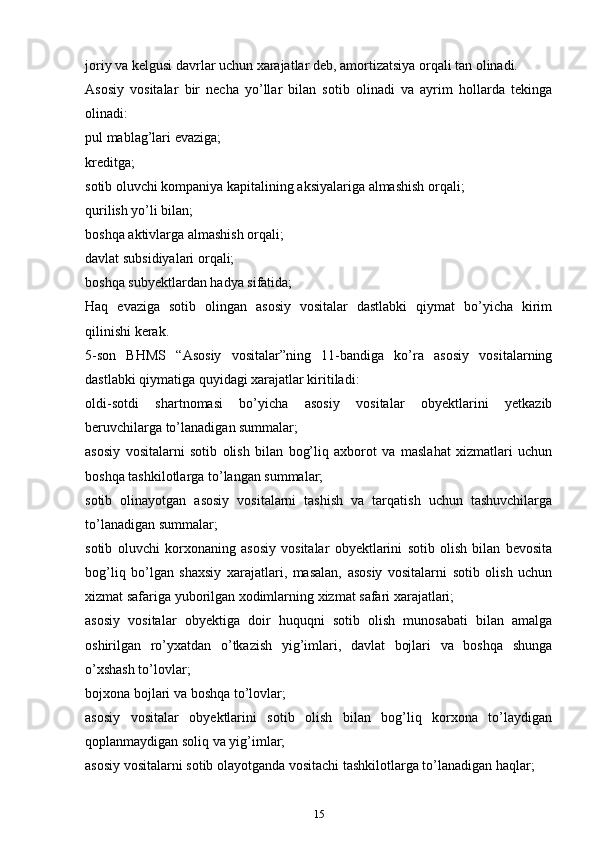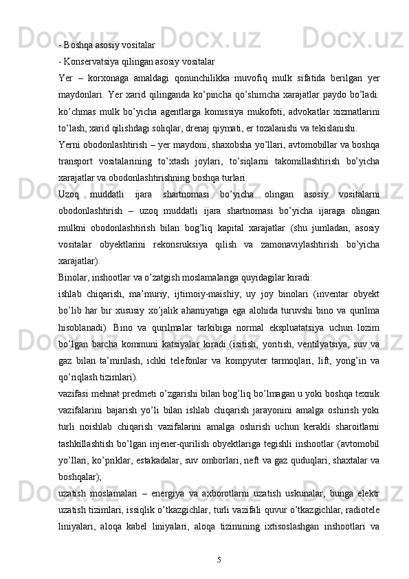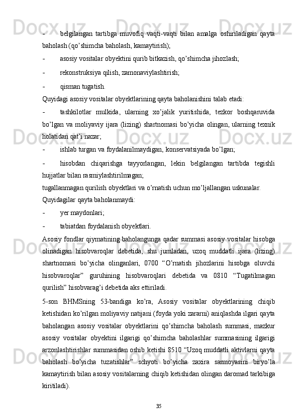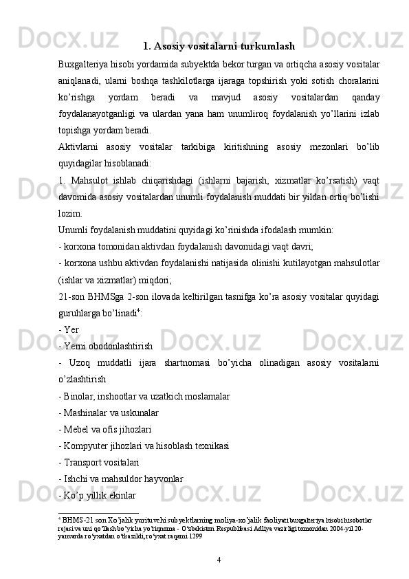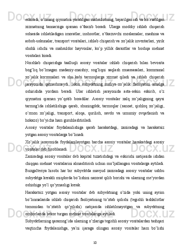 Asosiy vositalarni baholash va ularning qiymat ko'rsatgichlari