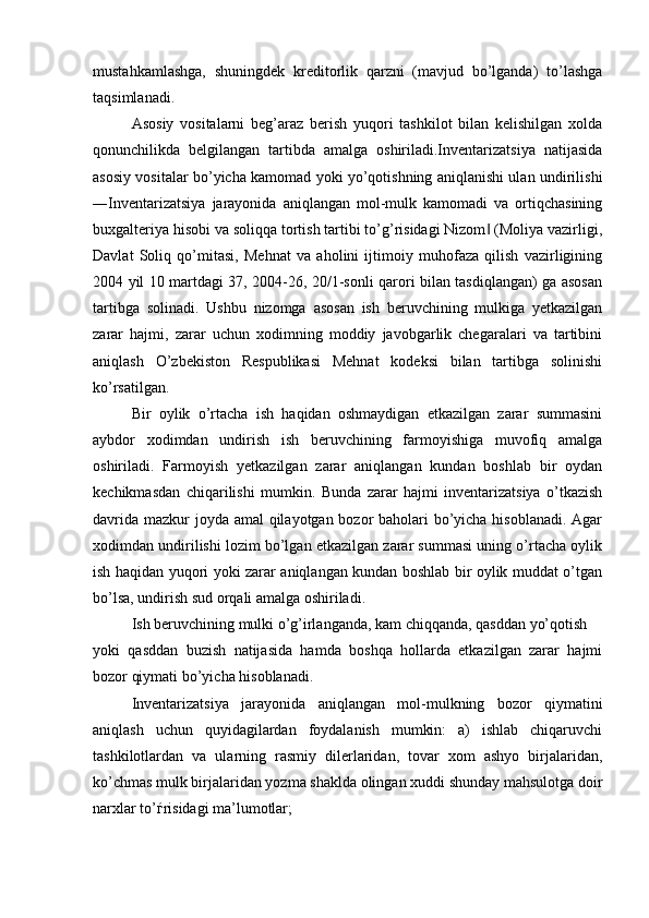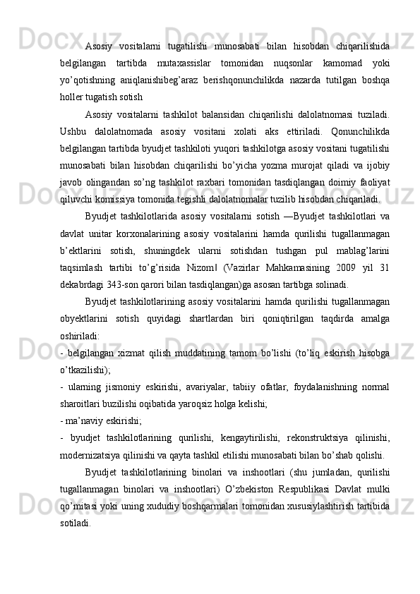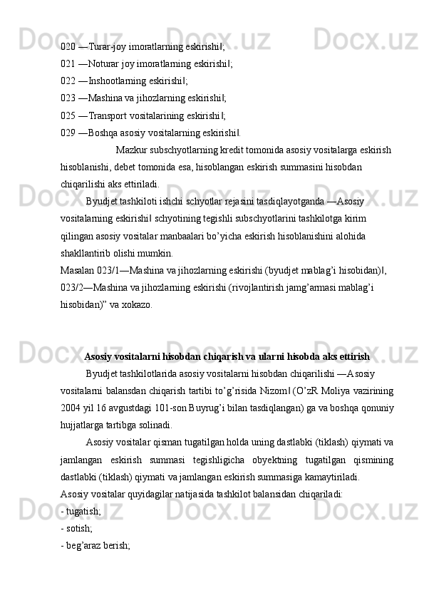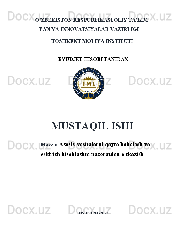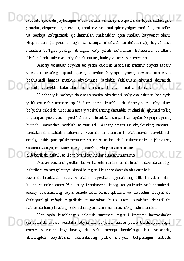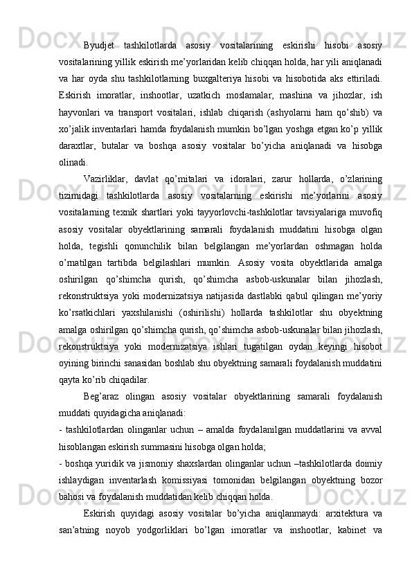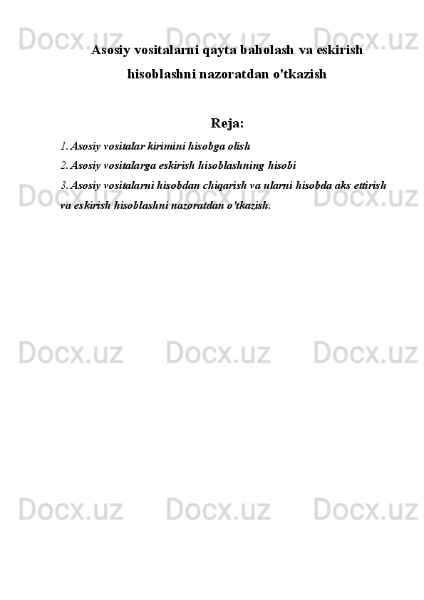 Asosiy vositalarni qayta baholash va eskirish hisoblashni nazoratdan o'tkazish