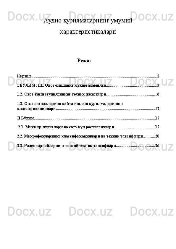 Микшер   пульти   овоз   сигналларини   шакллантириш,   тайёрлаш,   қайта