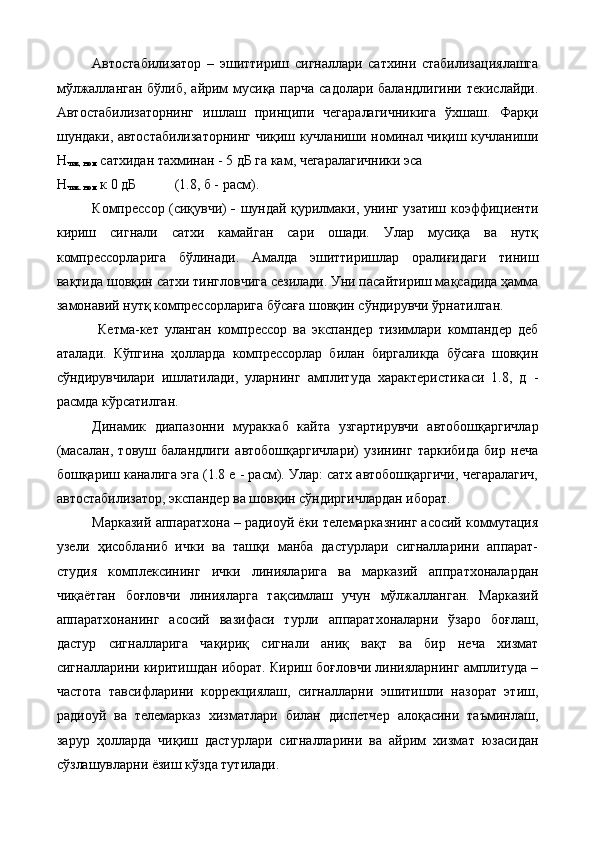 Автостабилизатор   –   эшиттириш   сигналлари   сатхини   стабилизациялашга