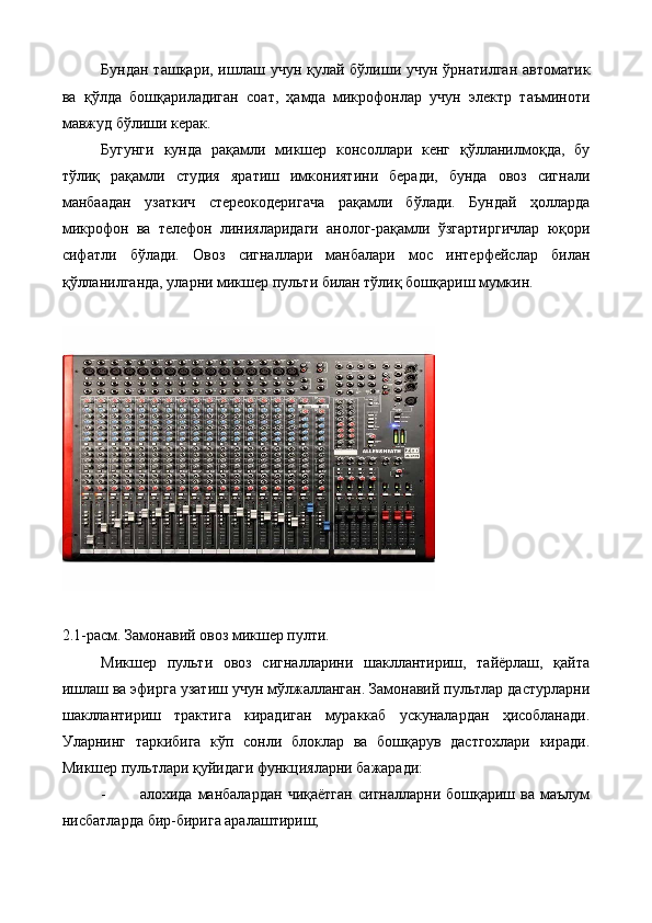 Бугунги   кунда   рақамли   микшер   консоллари   кенг   қўлланилмоқда,   бу