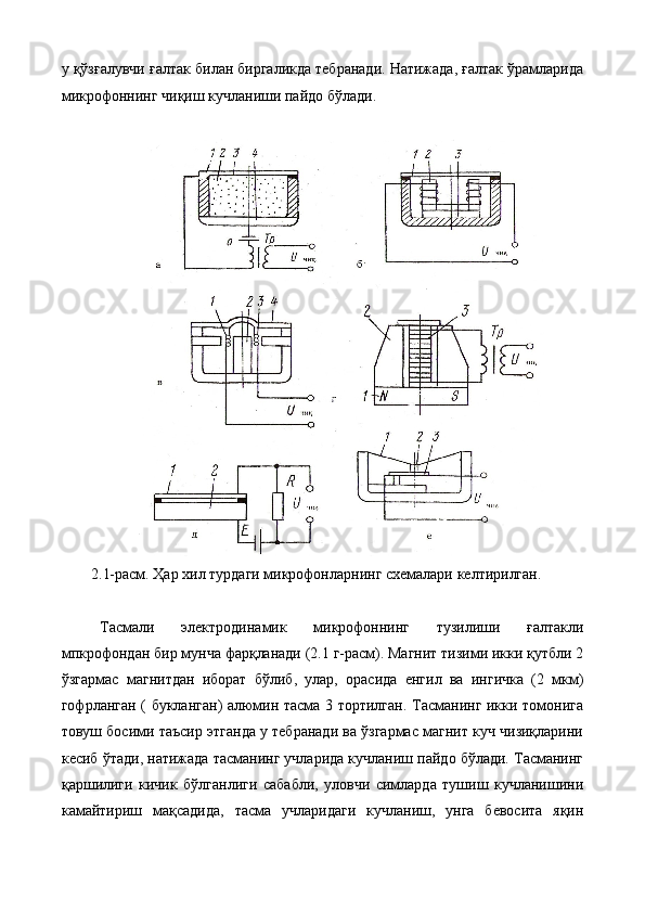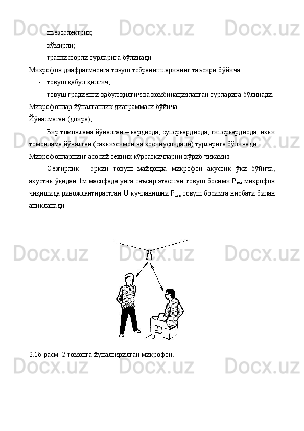 - конденсаторли (сиғимли, шу жумладан электретли); - электромагнитли;