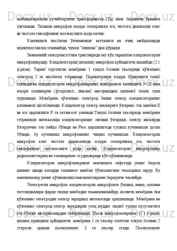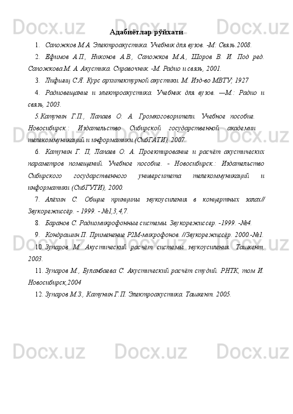 12. Зупаров М.З., Катунин Г.П. Электроакустика. Ташкент. 2005.
