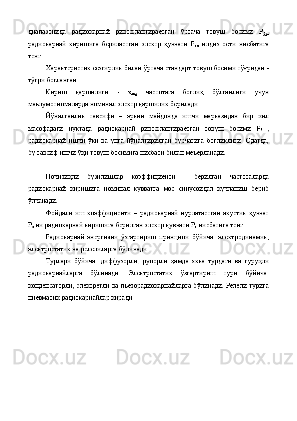 диапазонида   радиокарнай   ривожлантираётган   ўртача   товуш   босими   Р