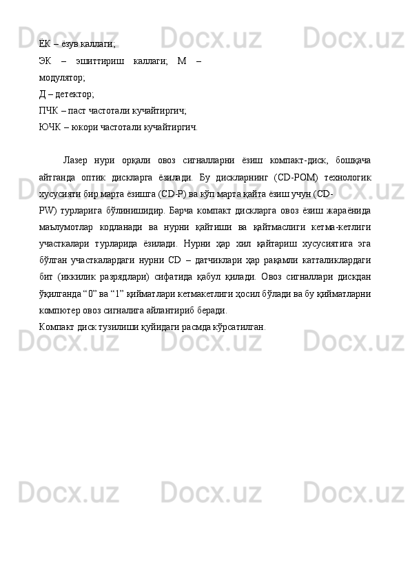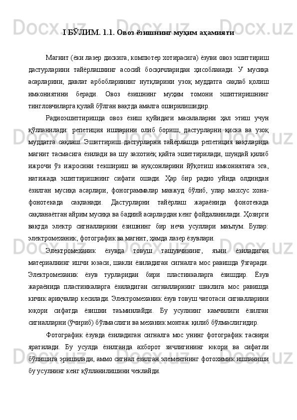 туфайли   кенг   қўлланилмокда.   Буларга:   сигнал   ёзилган   магнит   тасмасининг