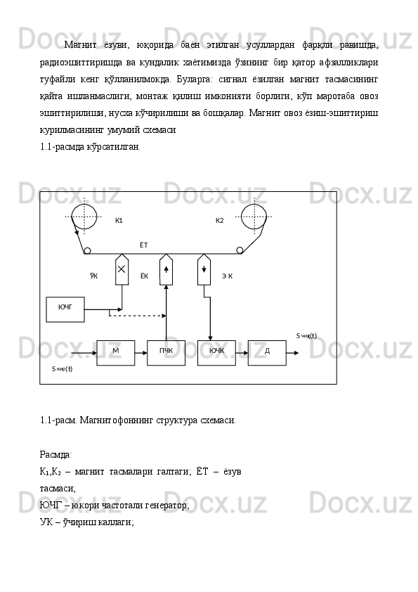 2   –   магнит   тасмалари   галтаги;   ЁТ   –   ёзув