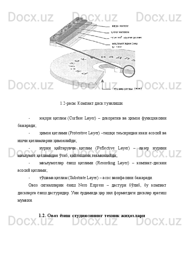 1.4-расм. Овоз ёзиш студияси компонентлари.