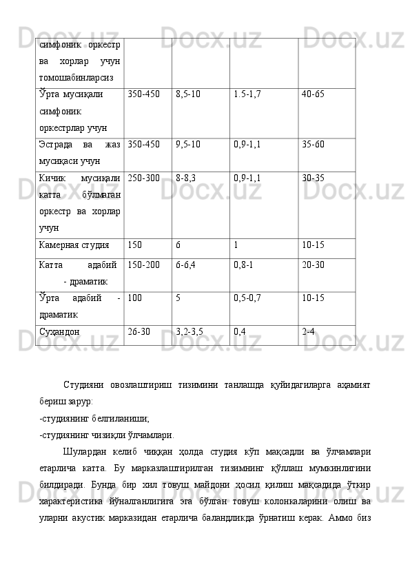 Студияни   овозлаштириш   тизимини   танлашда   қуйидагиларга   аҳамият