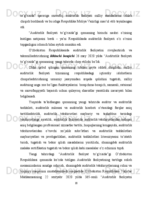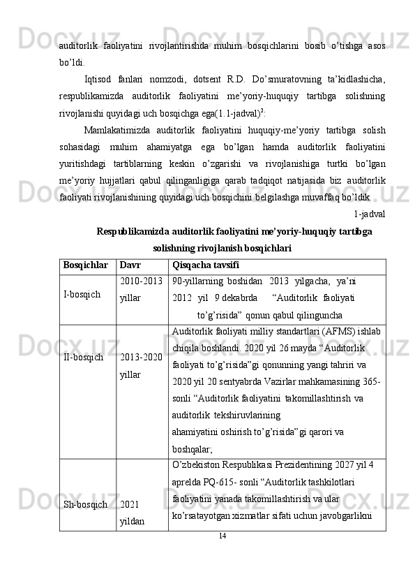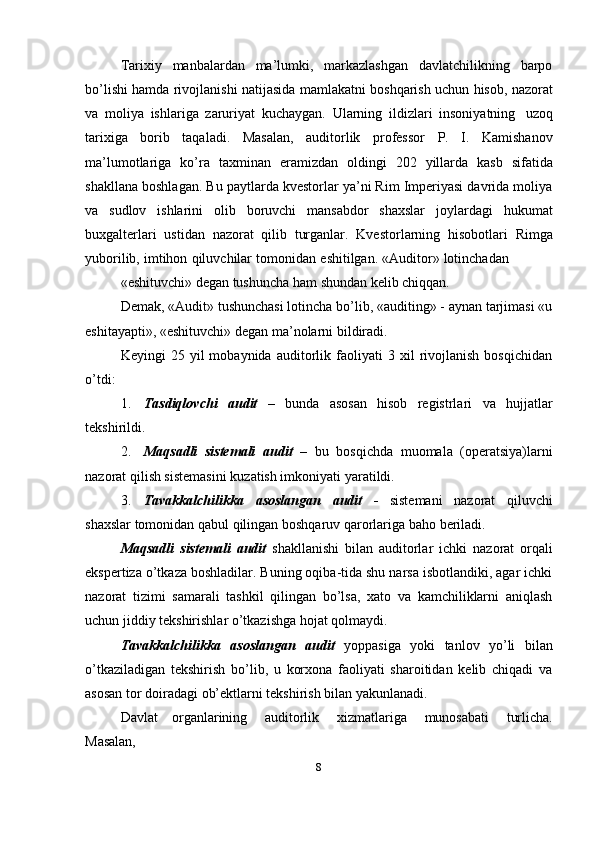 Auditorlik faoliyatining rivojlanish bosqichlari