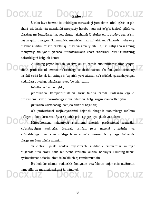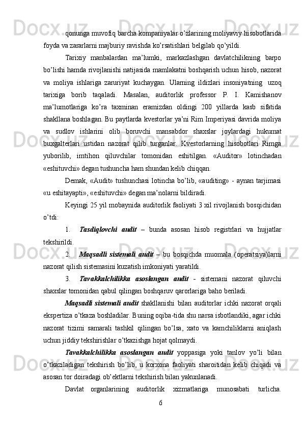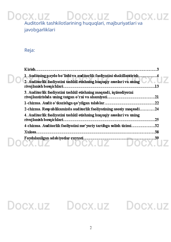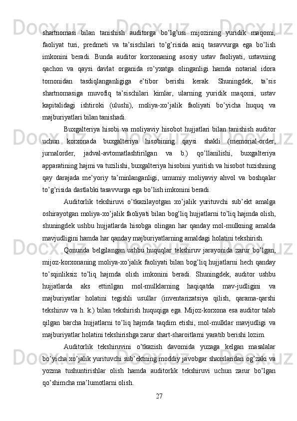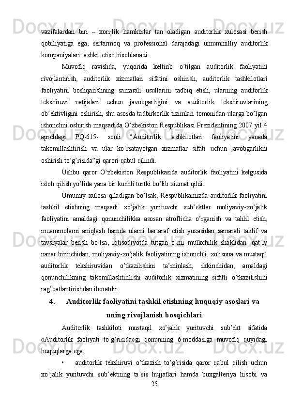 Auditorlik tashkilotlarining huquqlari, majburiyatlari va javobgarliklari