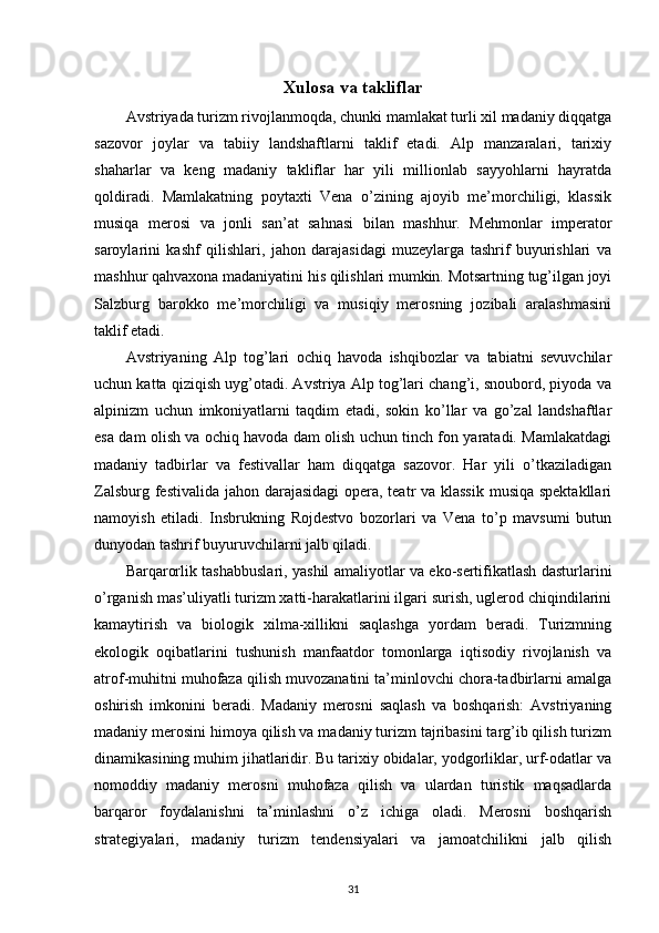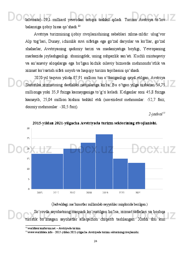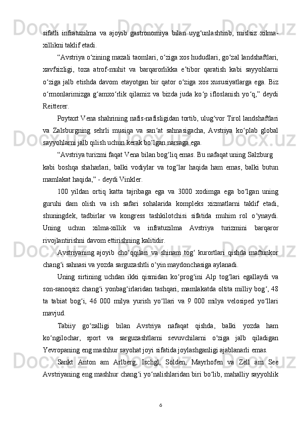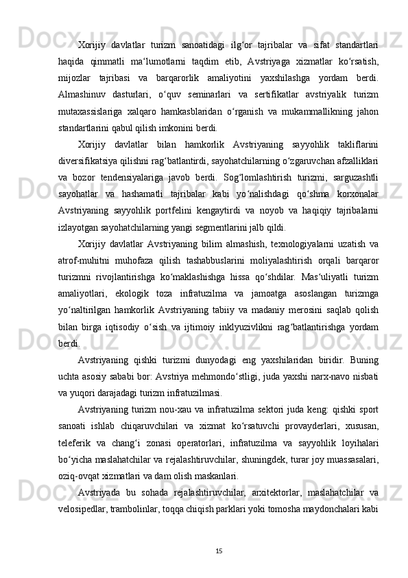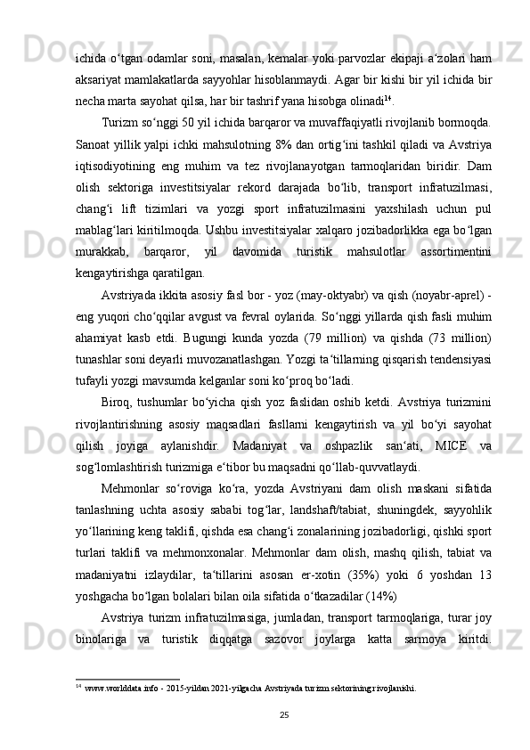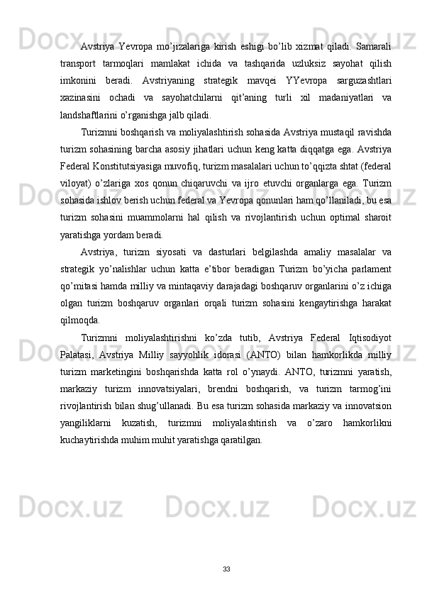 Xalqaro turizm fanidan Avstriya turizmining dinamikasi mavzusida kurs ishi