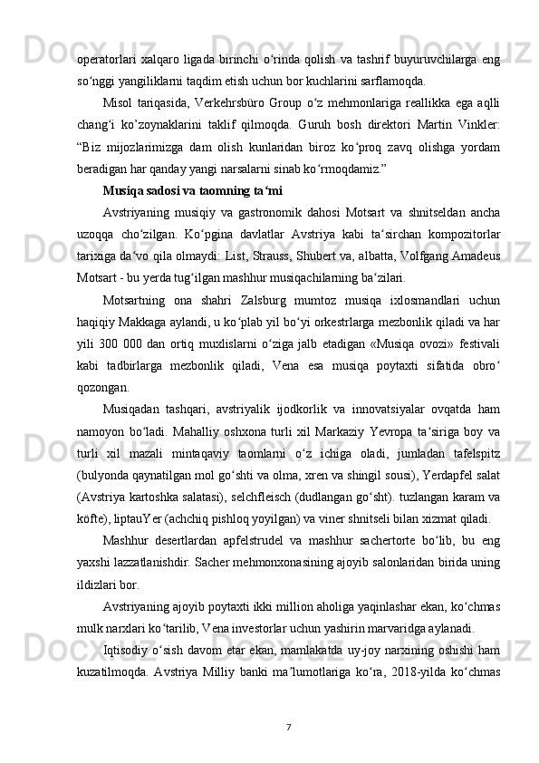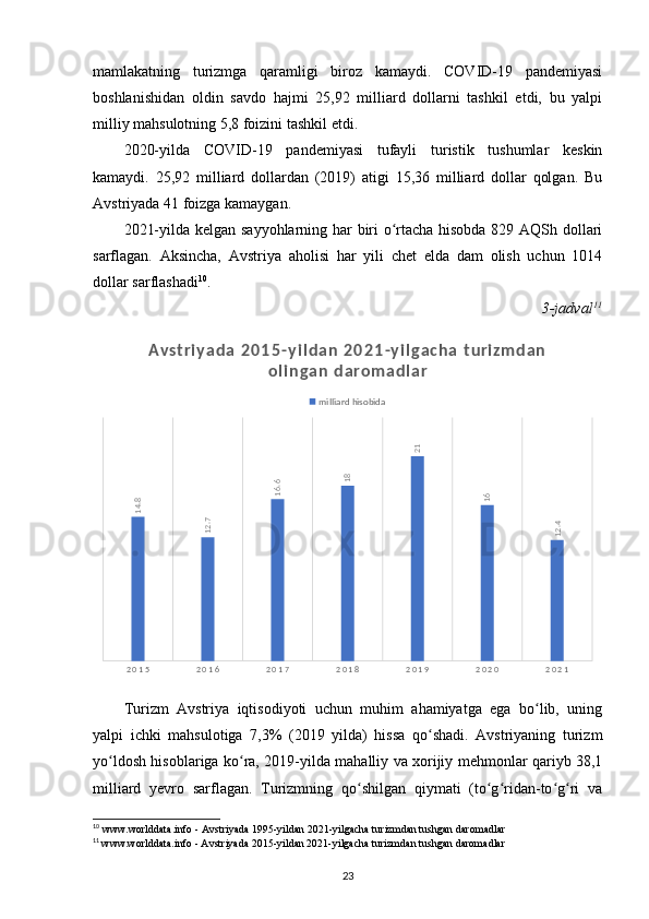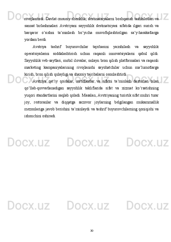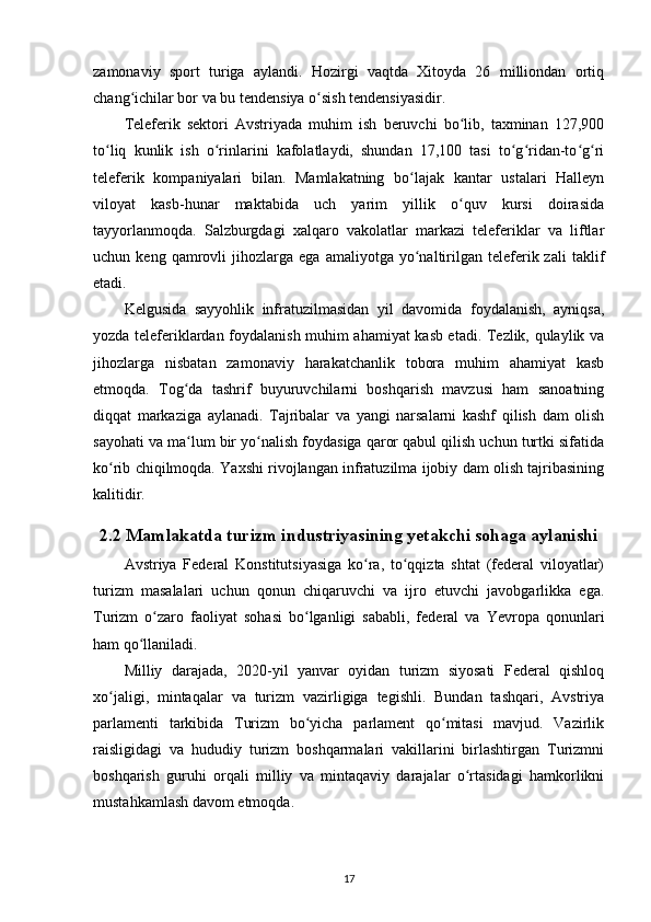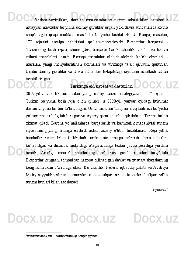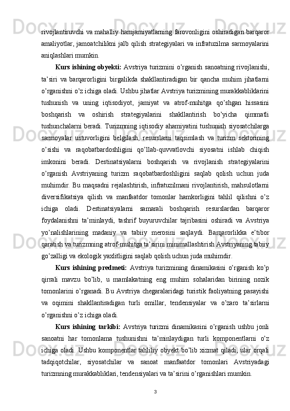Xalqaro turizm fanidan Avstriya turizmining dinamikasi mavzusida kurs ishi