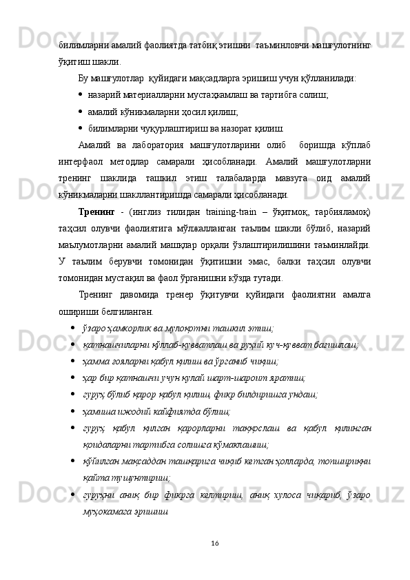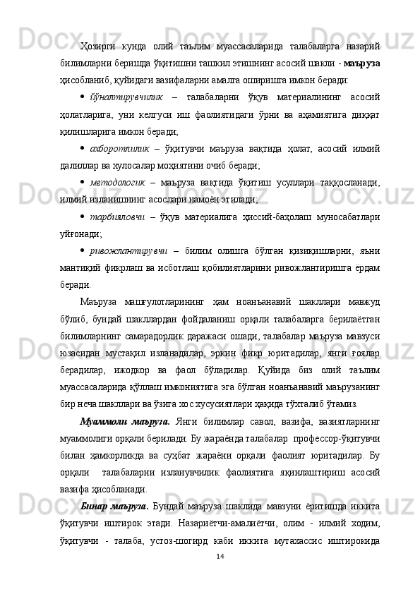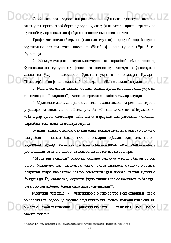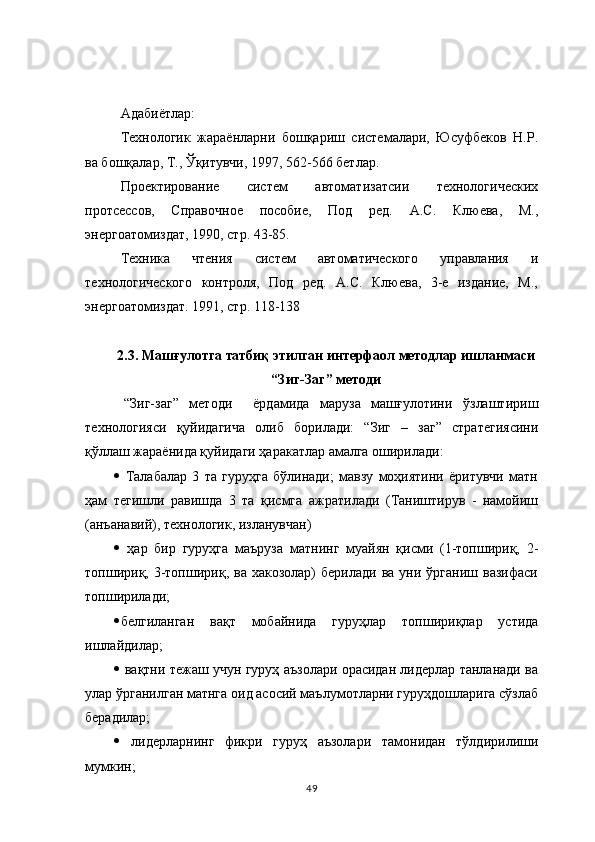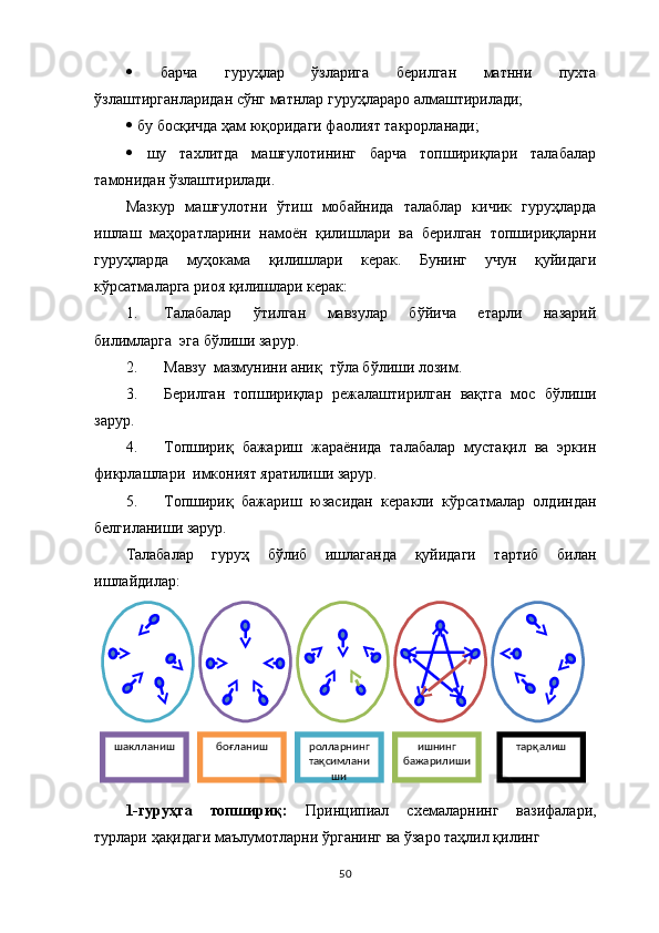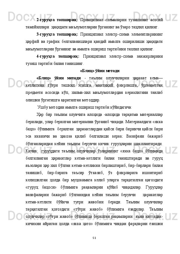 | 2.3 | Мавзуга татбиқ этилган интерфаол методлар ишланмаси | 51 |